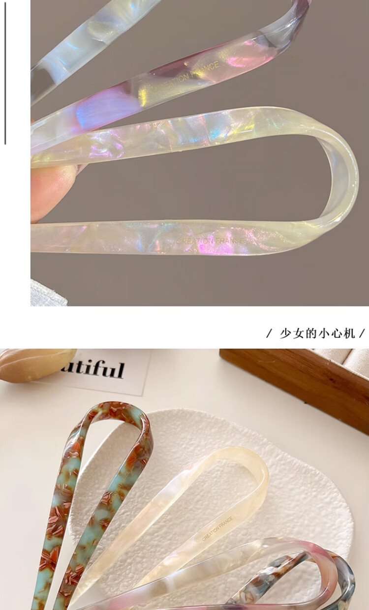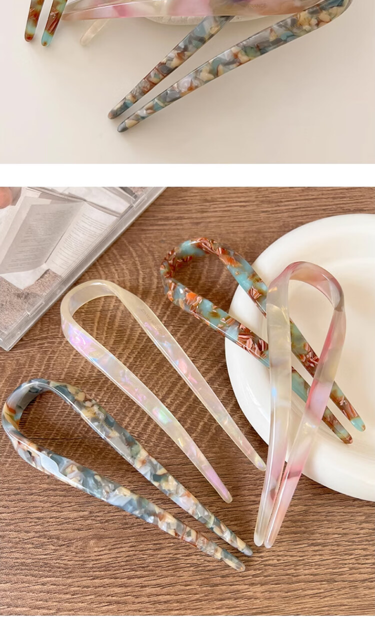 Two Worlds of Love, high-end acetic acid U-shaped hairpin for women, new Chinese style ancient style cheongsam, hairpin, horse face skirt, hairpin and headdress, spring sky blue