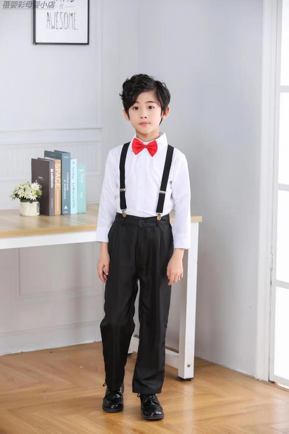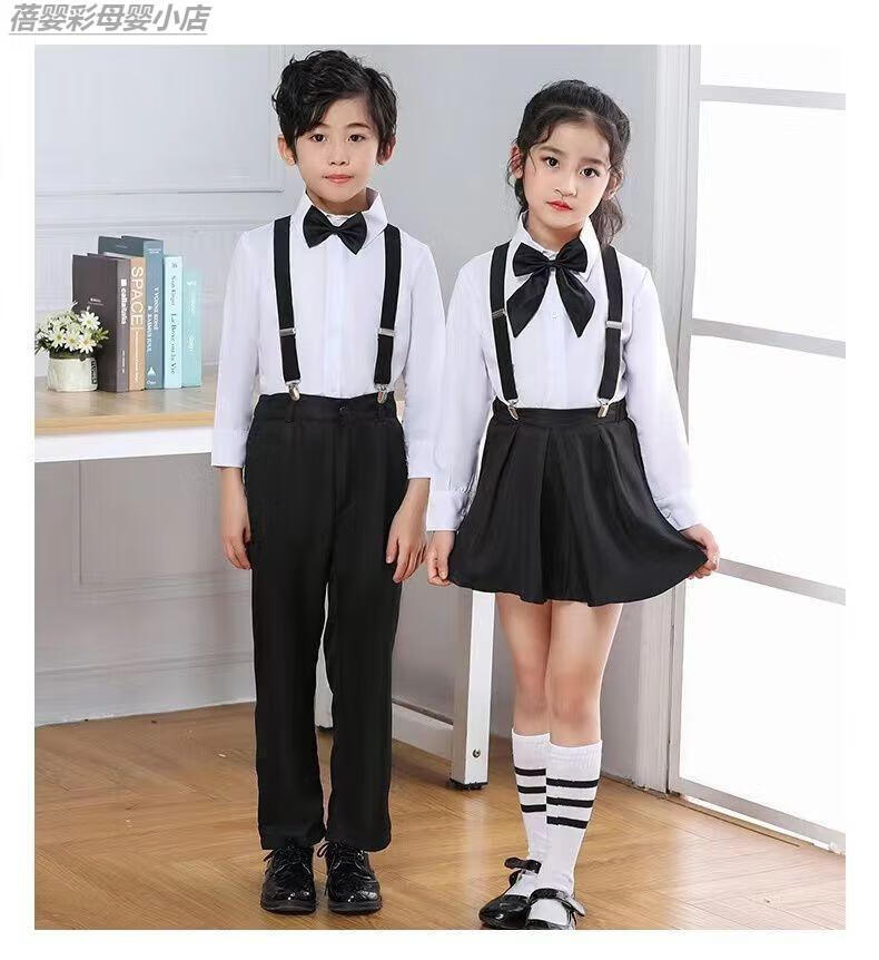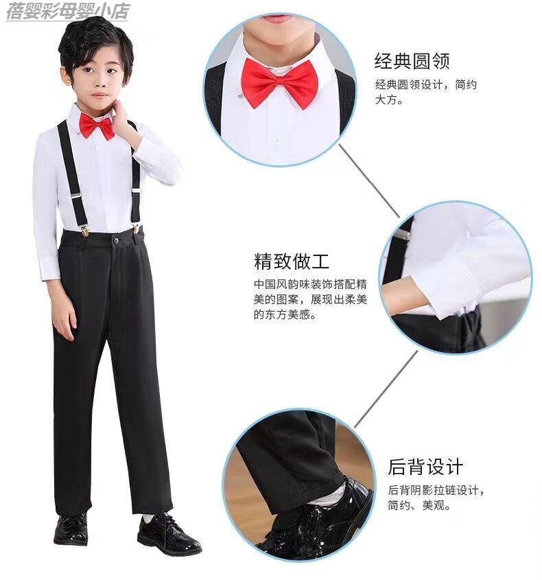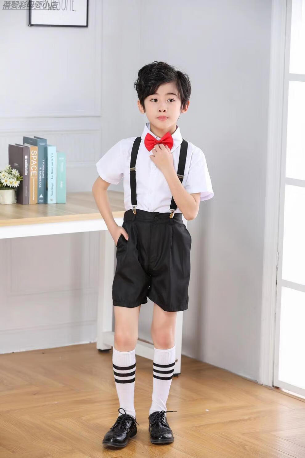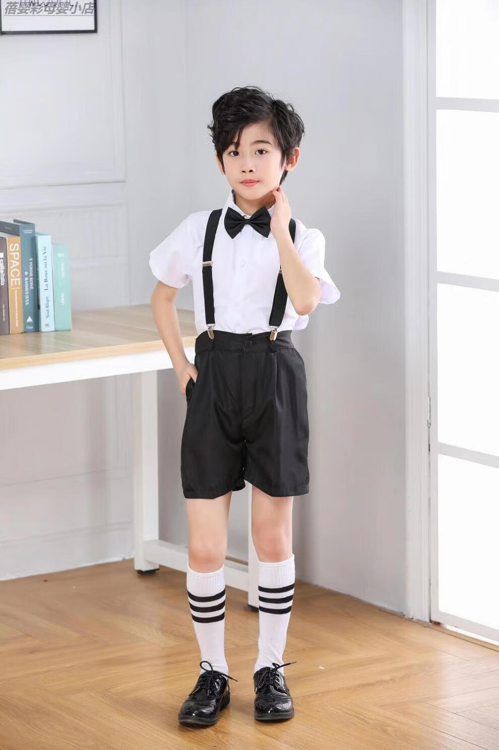 Children's Day Children's Day Performance Clothes Kindergarten Performance Clothing Kindergarten Performance Children's Performance Clothes Chorus Clothes Dance Recitation Dress Princess Skirt Puff Skirt Overalls Kindergarten Students Men's Short-Sleeved Shorts + Black Tie Suspenders + Socks 120