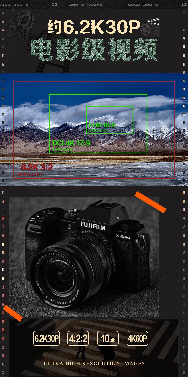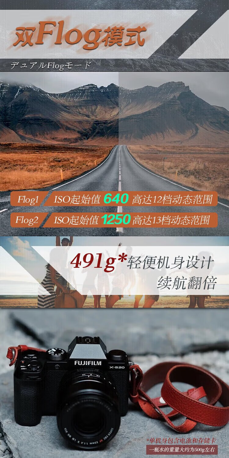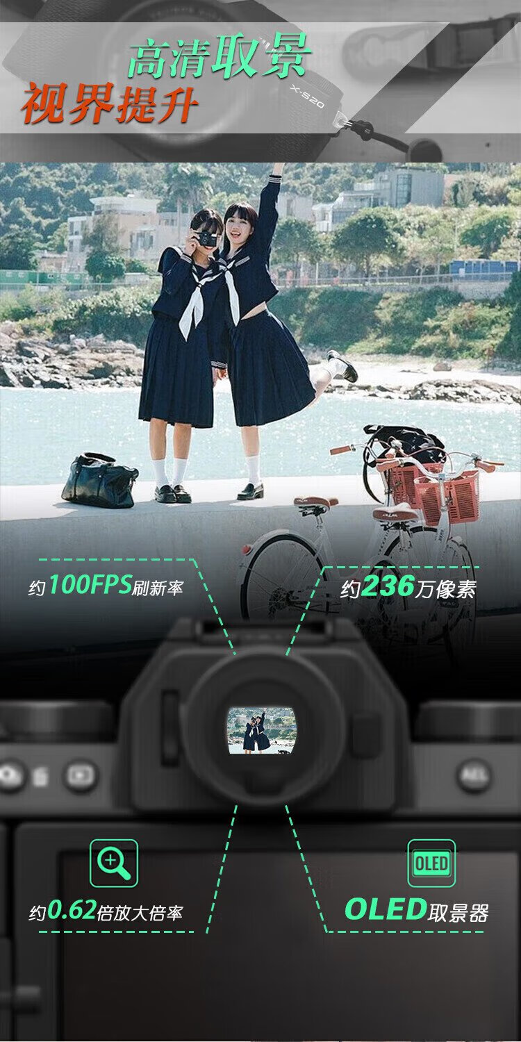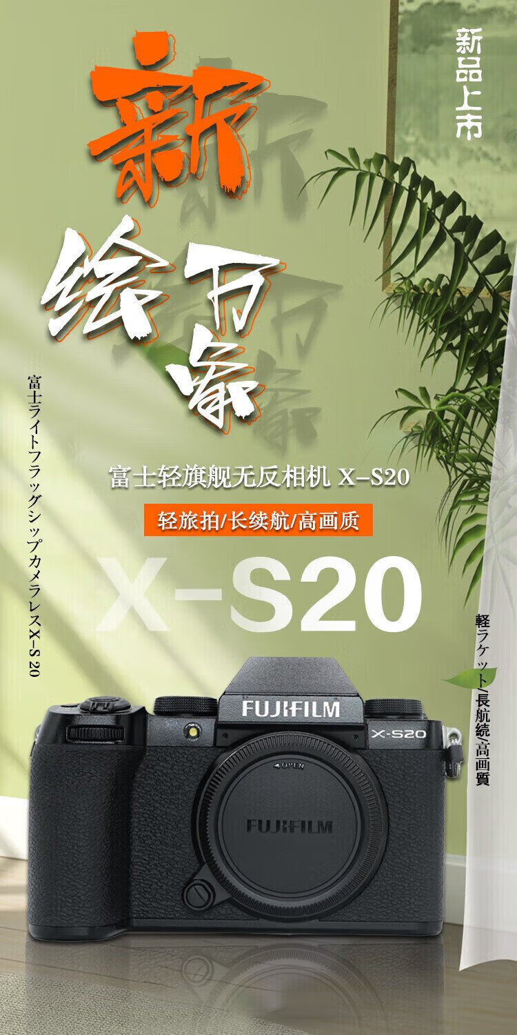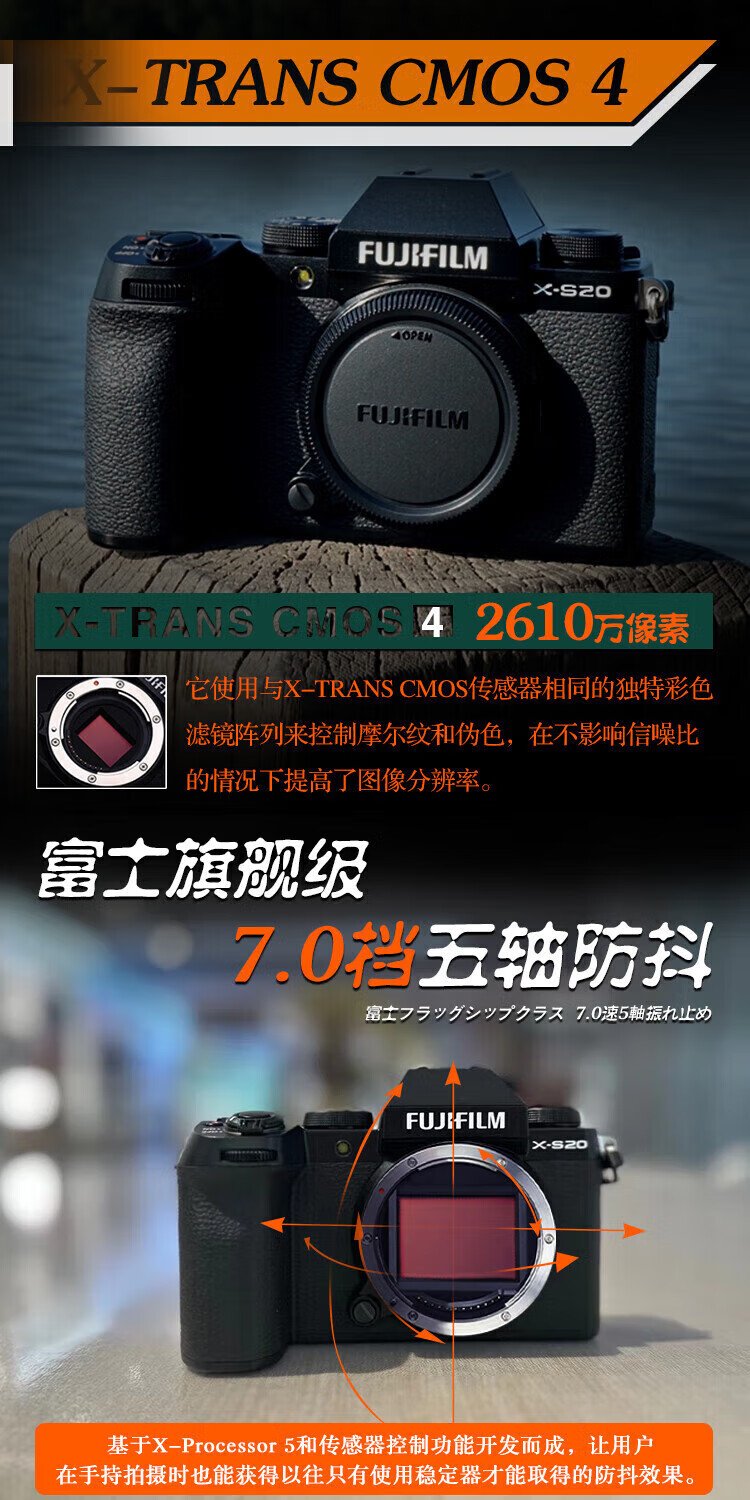 Fuji (FUJIFILM) xs20 x-s20 xs10 upgraded retro mirrorless camera 4KVlog shooting travel live broadcast digital camera XS20+XC15-45 lens (standard lens) Package 2 64G card + domestic battery + vlog tripod