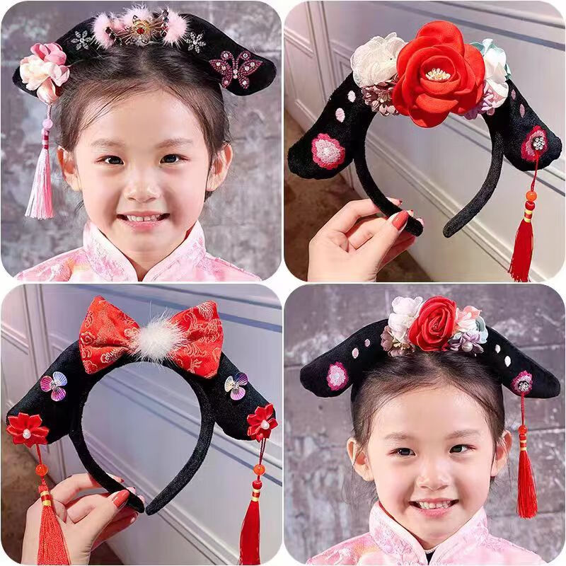 Muyu Palace Princess Hairband Cute Hanfu Tang Suit Princess Hair Accessory Empress Flag Head Baby Headband Children's Hairpin Headband Princess Headband One Pack
