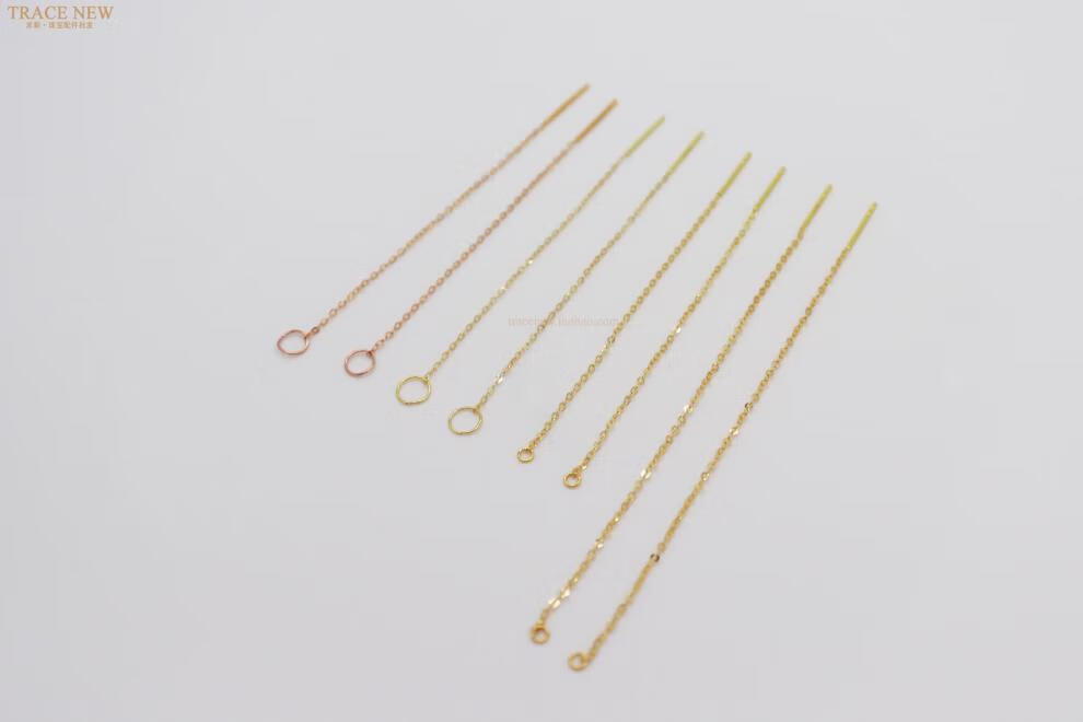 DL 1998 Fat Donglai same style 18k gold ear wire 18K gold pin circle safety buckle earrings Pearl emerald beeswax earrings earring chain 18K yellow 5cm ear wire 0.9mm thick