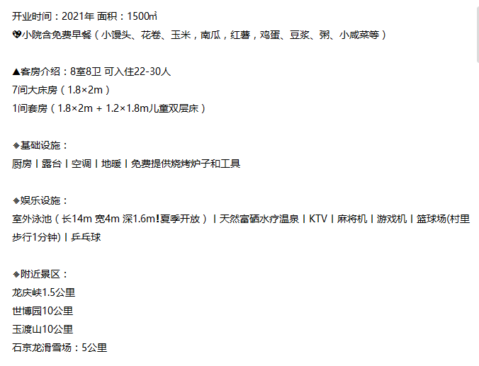 Yuanqi Manxin Villa Yanqing 8 bedrooms weekday price (Sunday-Thursday)