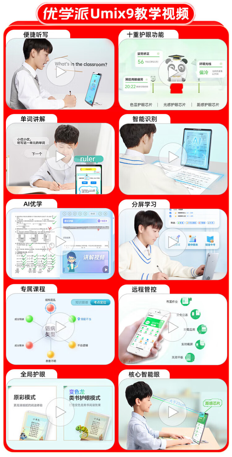 Uxuepa Umix9+ learning machine 10G+128G large memory student tablet computer from first grade to high school synchronous tutoring smart eye protection tablet online tutoring machine English learning machine umix9+ 8G+2G+128G SF Express