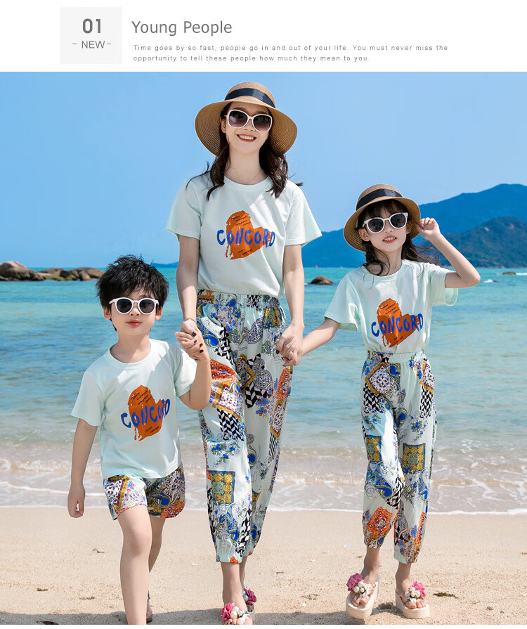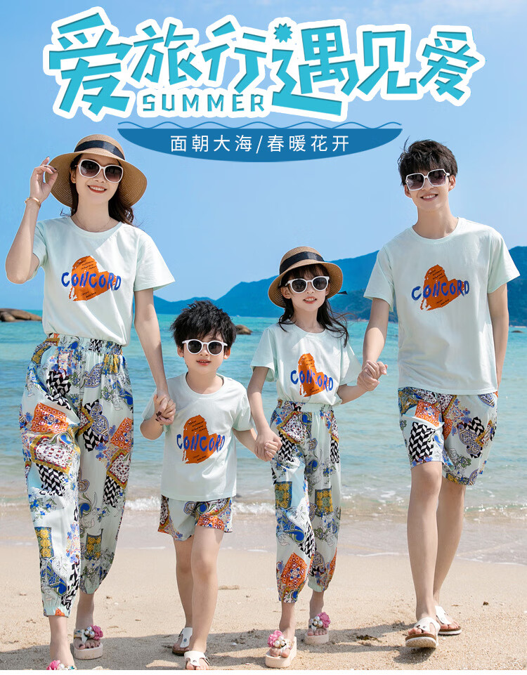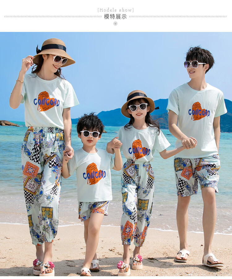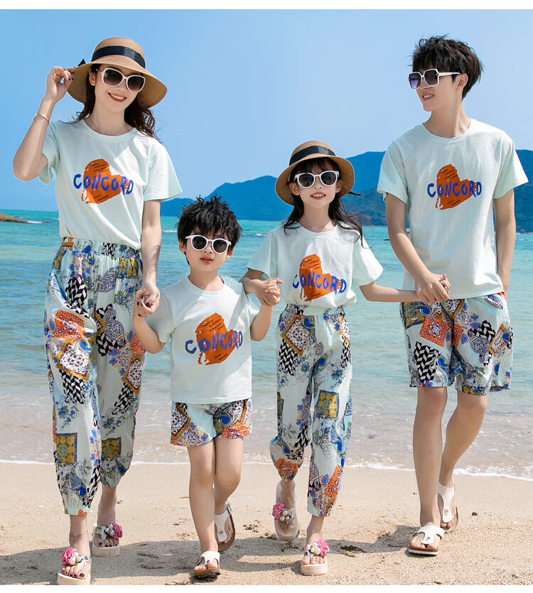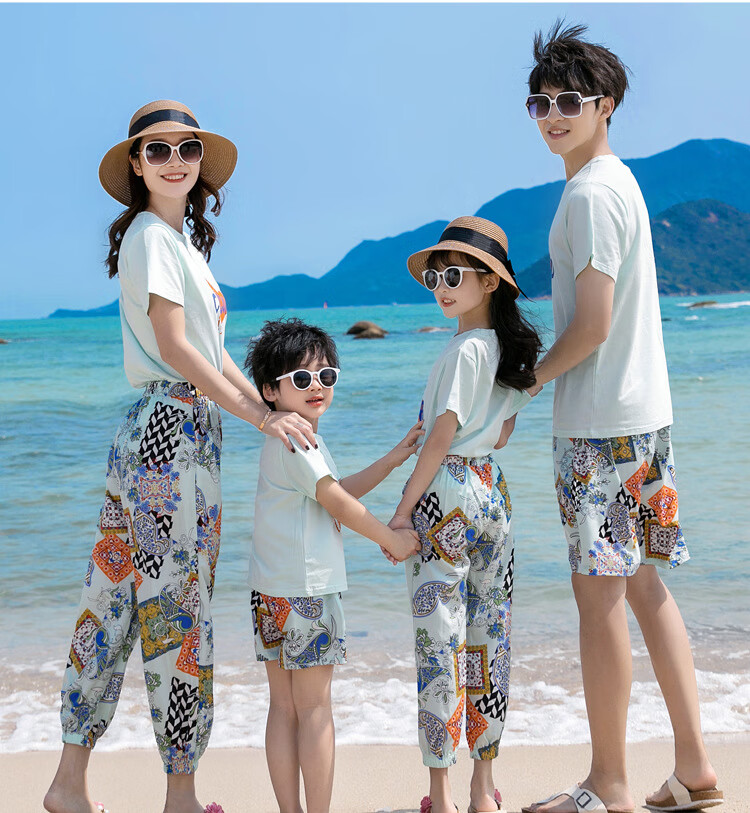 Buenpu's new travel beach parent-child outfit, nine-point pants for a family of three or four, seaside vacation fashion sub-suit T173 suit mom 3XL