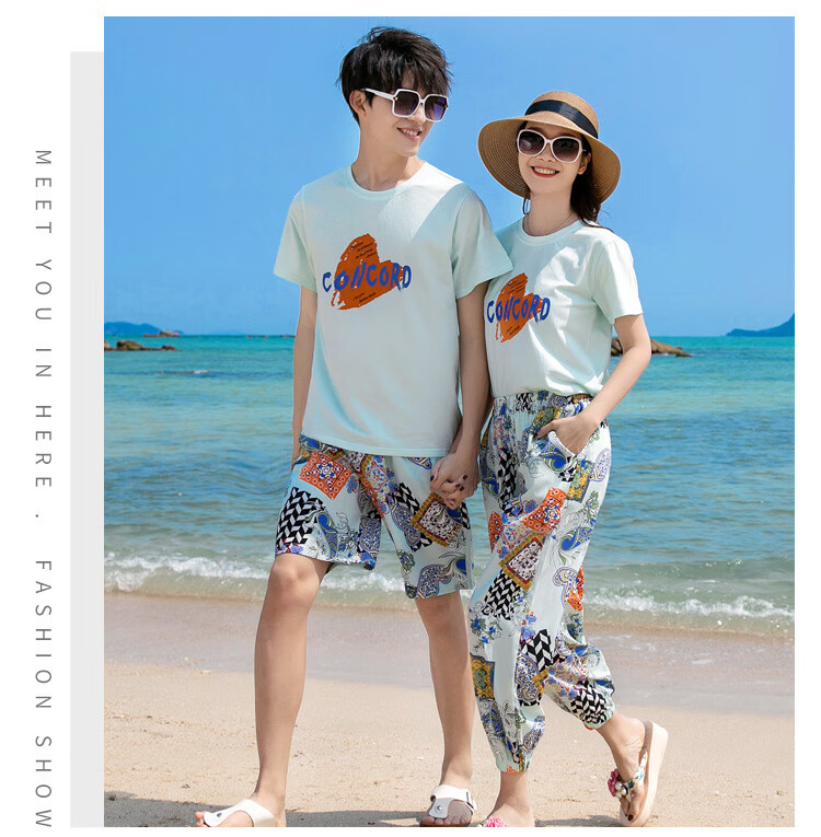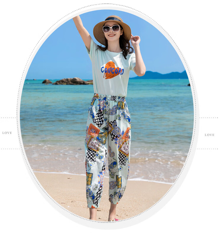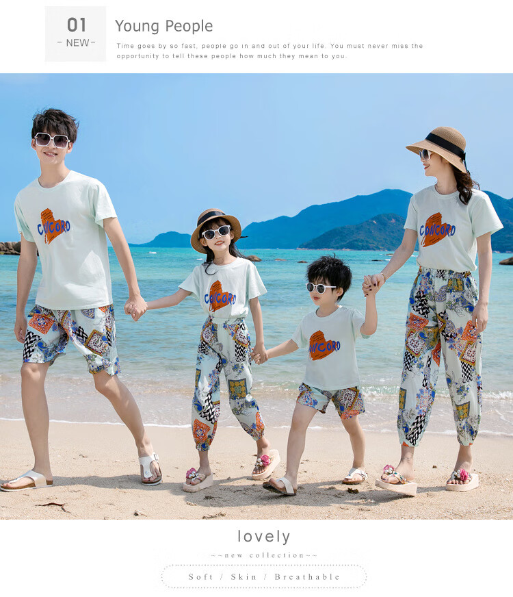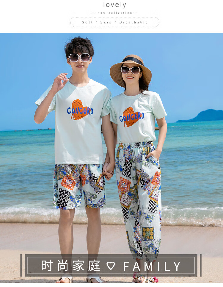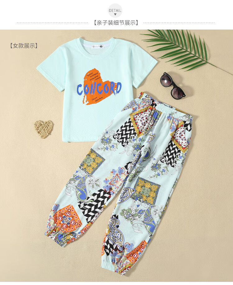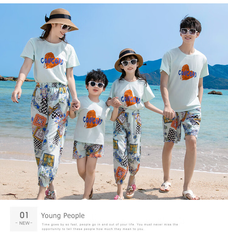 Buenpu's new travel beach parent-child outfit, nine-point pants for a family of three or four, seaside vacation fashion sub-suit T173 suit mom 3XL