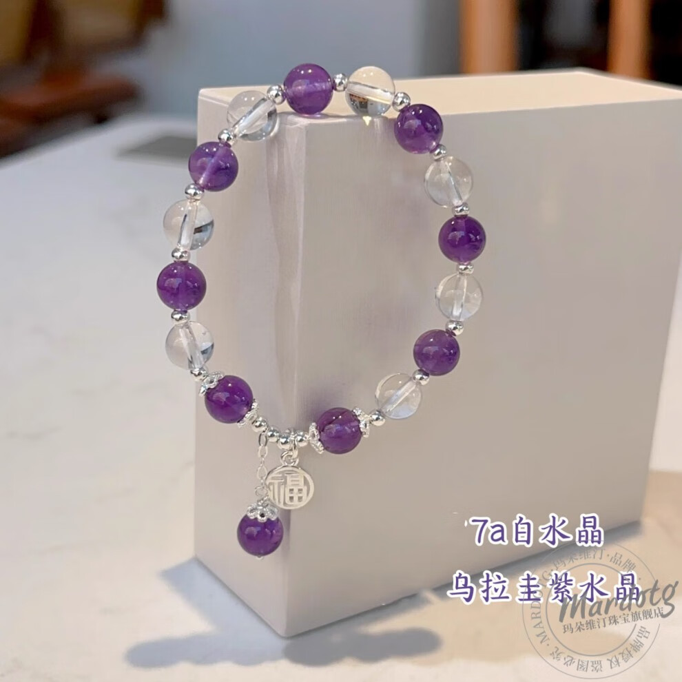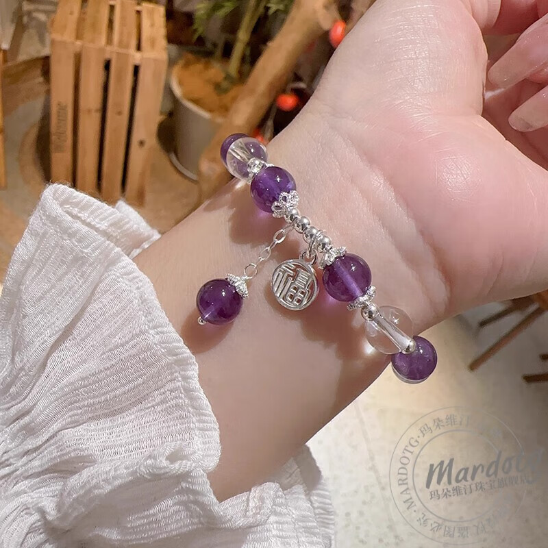 MARDOTG Uruguayan amethyst bracelet for women, white crystal bracelet jewelry, gift for women, 6mm bead diameter