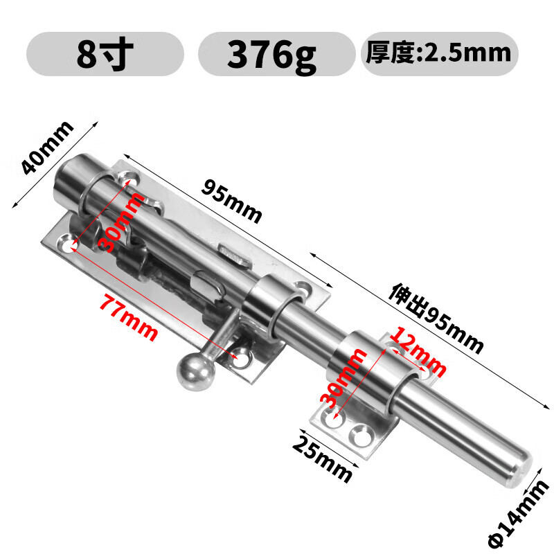 ZANLUTONG 304 stainless steel latch door lock buckle thickened left and right door latch door buckle wooden door latch upper and lower heaven and earth latch 304 stainless steel 12 core with screws (8 inches)