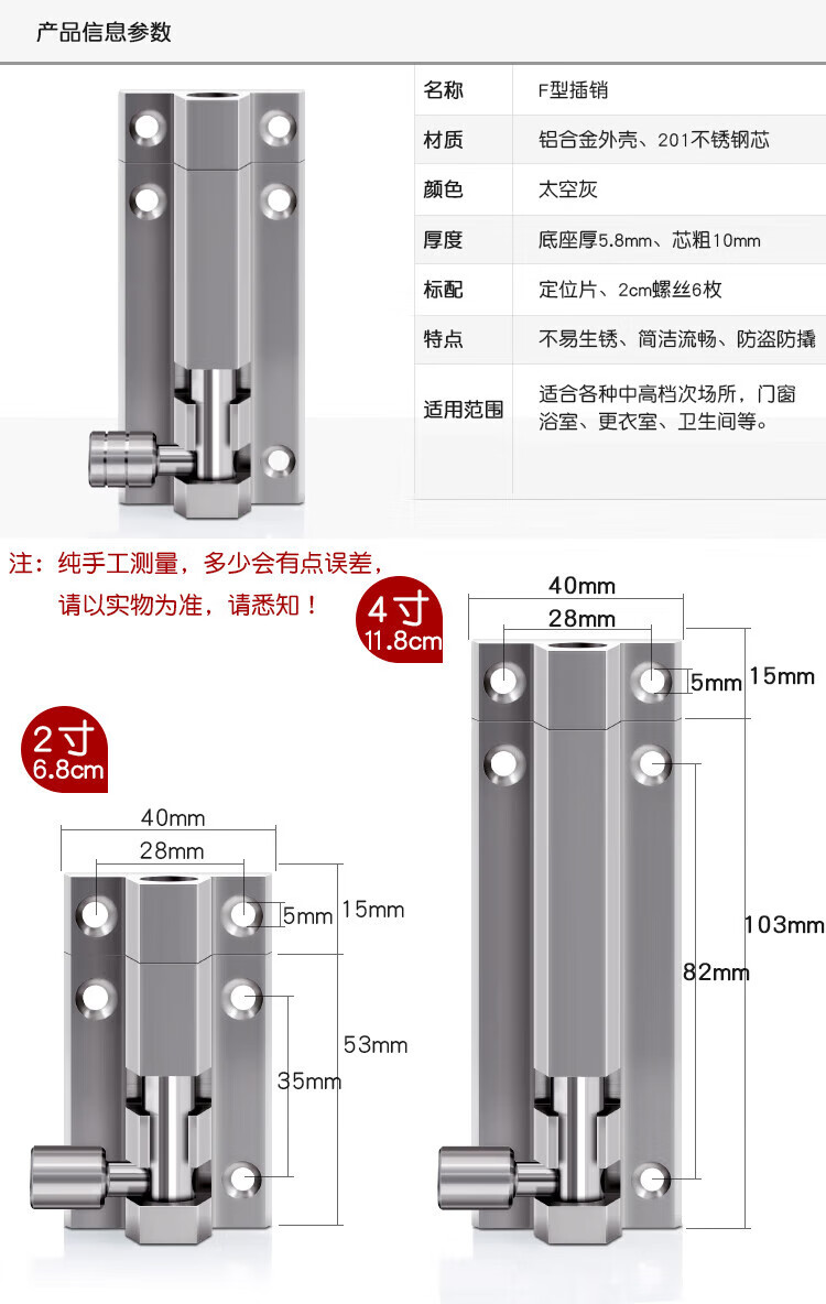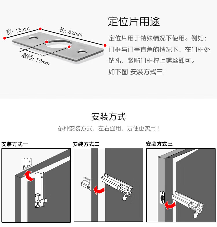 ZANLUTONG door latch door buckle door latch thickened aluminum alloy exposed latch door lock wooden door latch window theft bathroom door powerful latch 3 inches (9cm)
