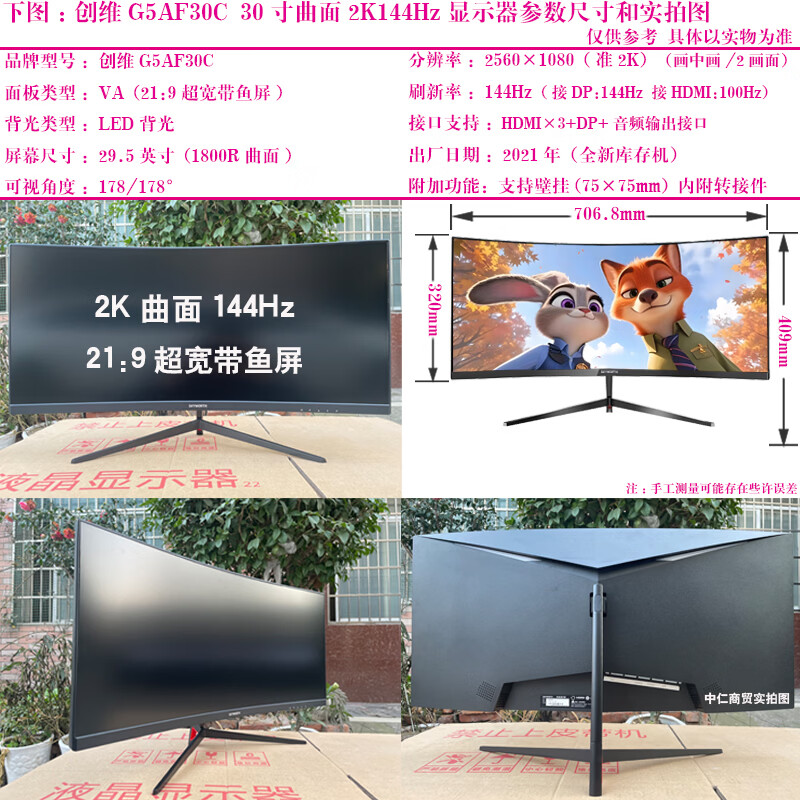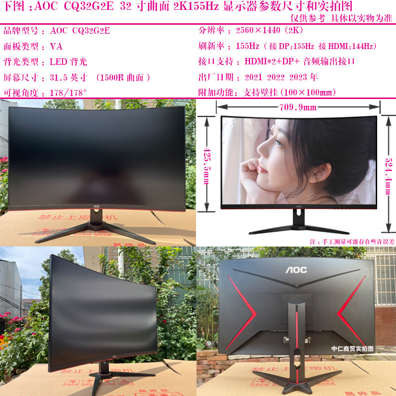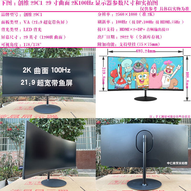 Monitor de segunda mano HKC Samsung AOC Philips Computadora de 32 pulgadas 144 HZ 2K HD 39 Monitor de juegos LCD curvo 27 Pantalla de cibercafé Skyworth 29C1 Pantalla de cola de pelo curva de 29 pulgadas 2K100Hz 90% nuevo