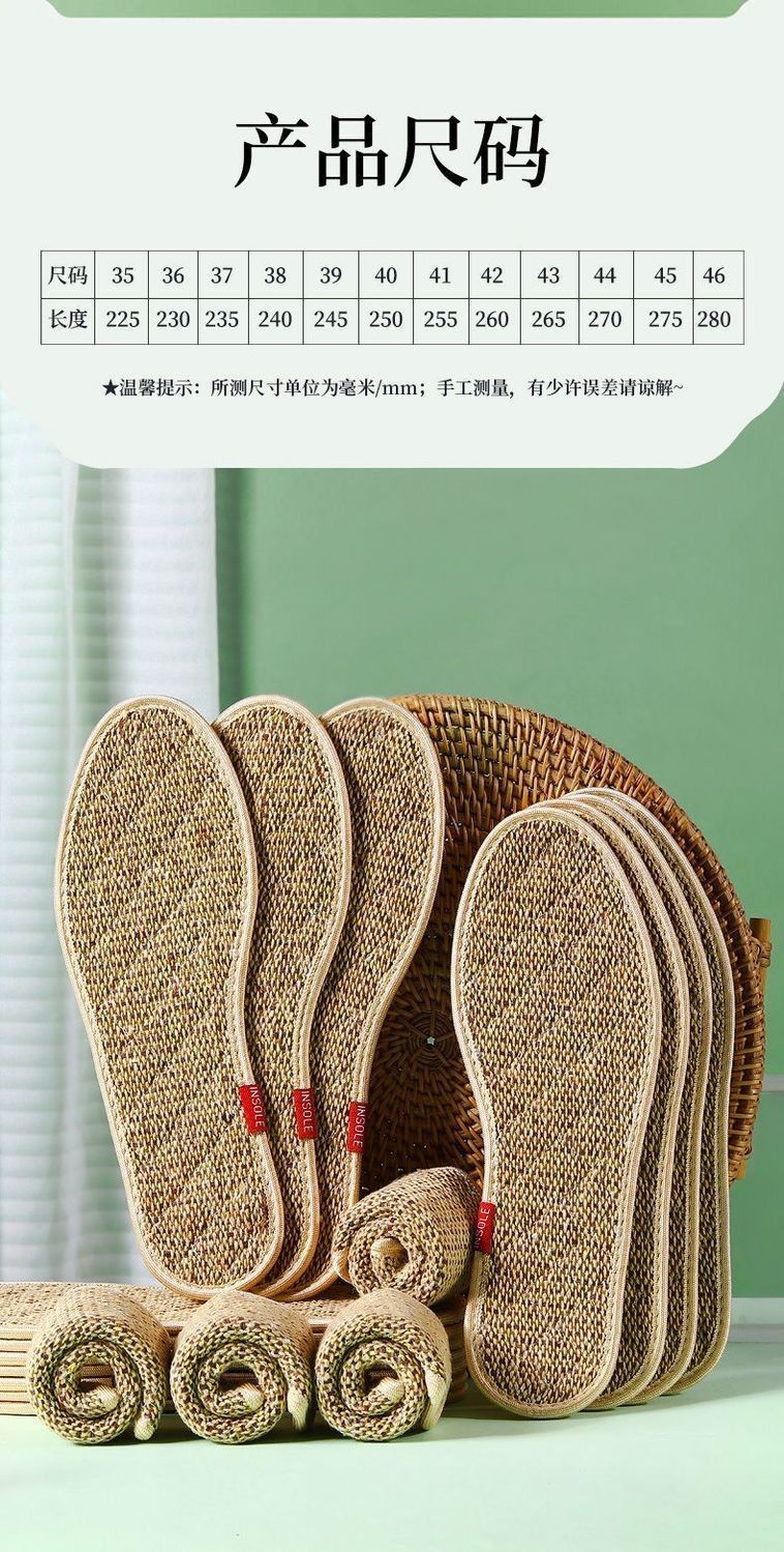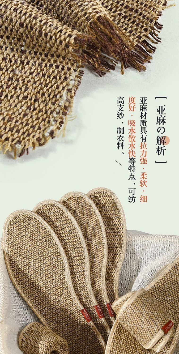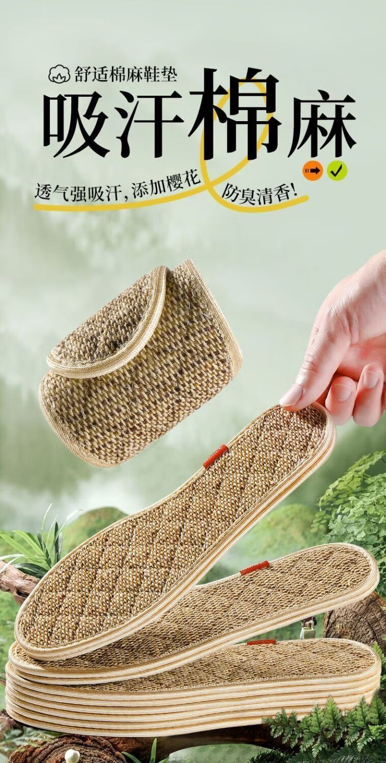 Wormwood cotton and linen outdoor sports strong sweat-absorbent, breathable, deodorant, antibacterial, non-slip and breathable insoles 5 pairs of mugwort cotton and linen sweat-absorbent-washable 42