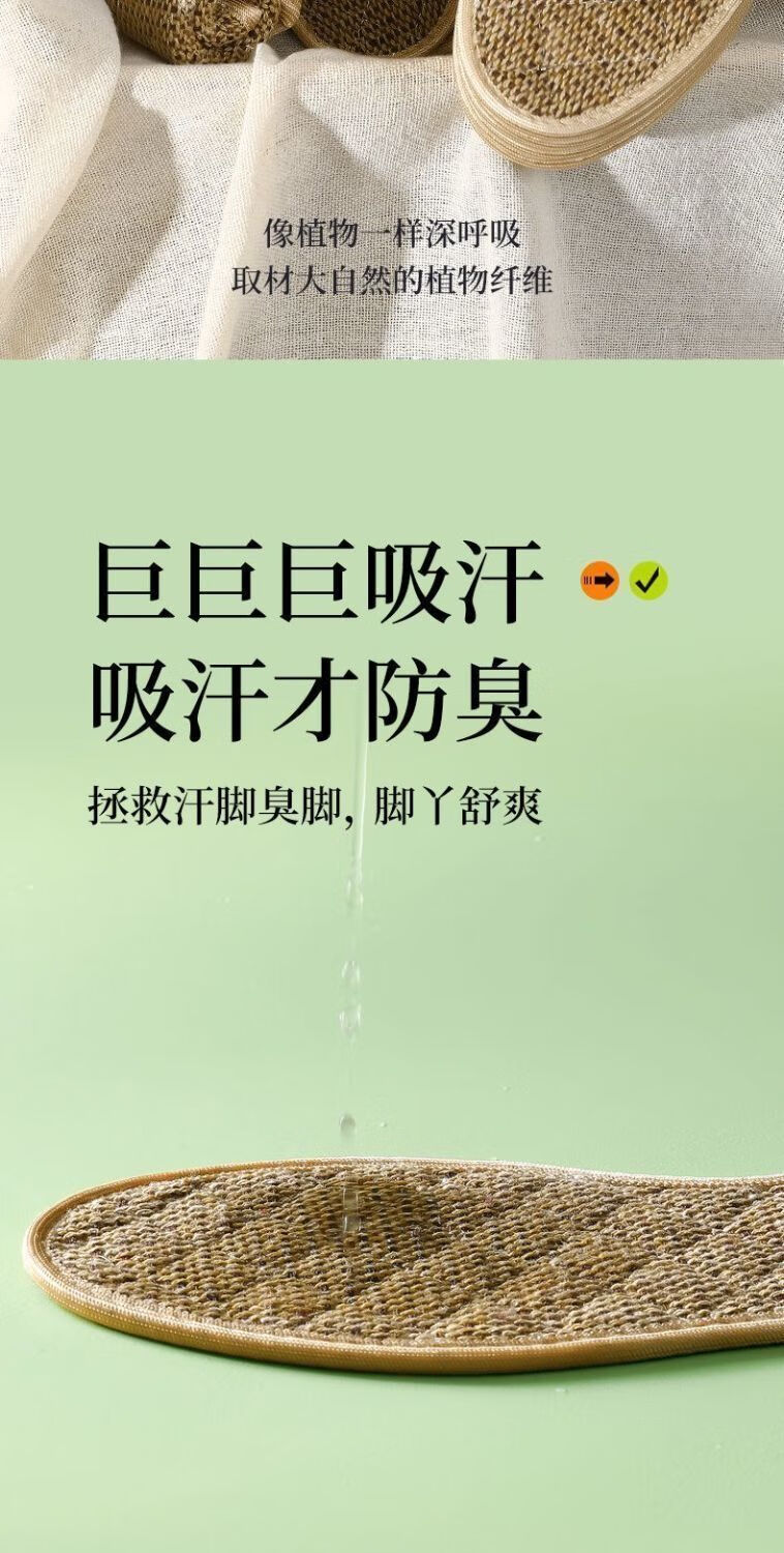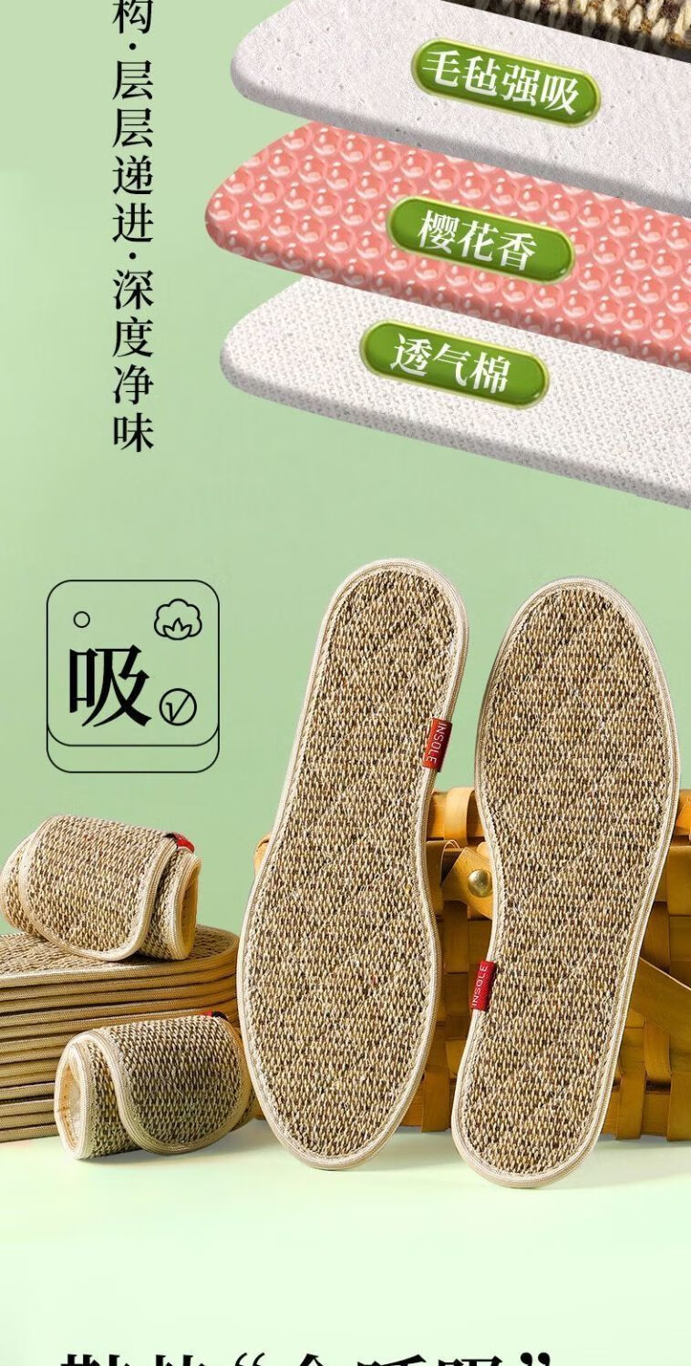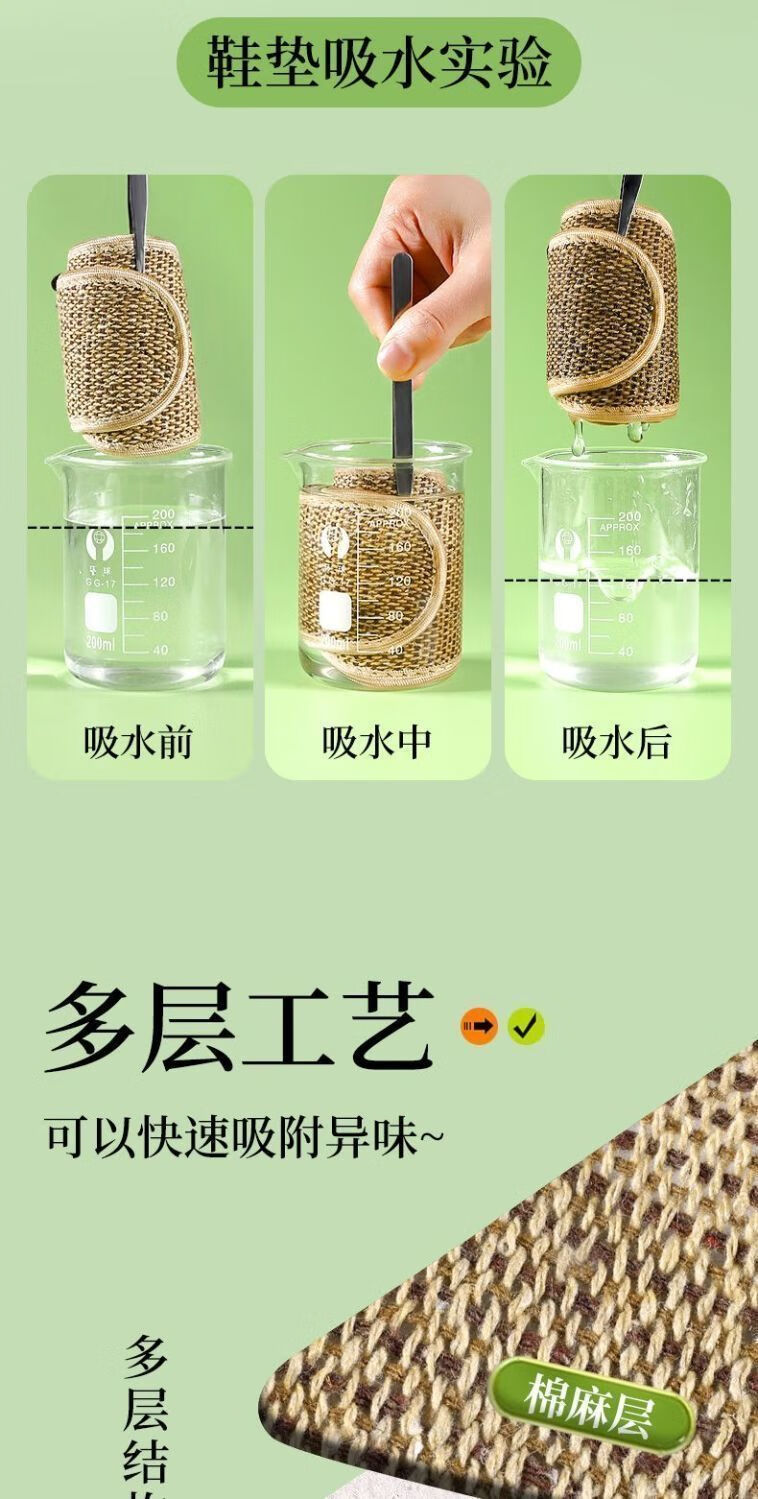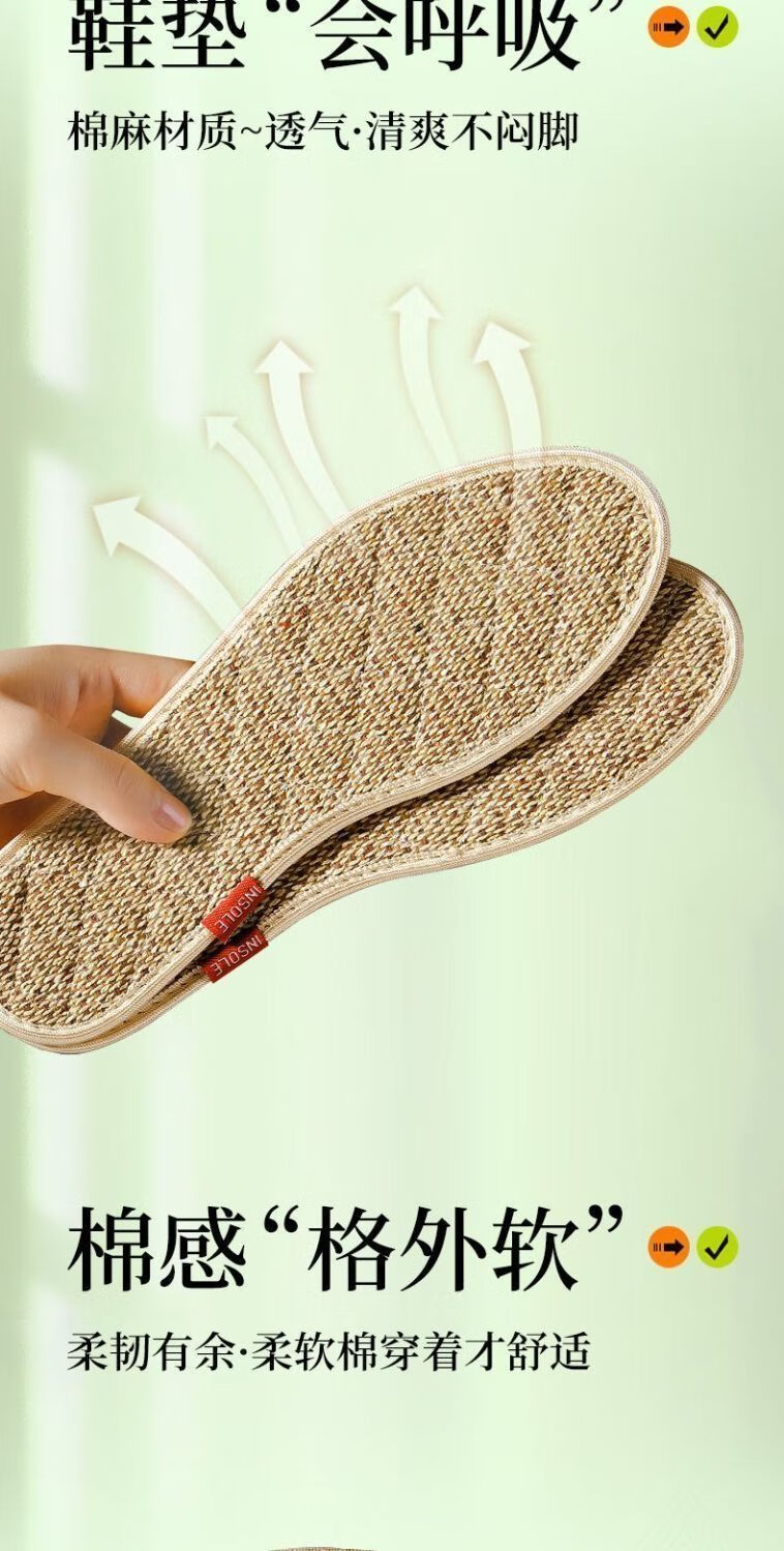 Wormwood cotton and linen outdoor sports strong sweat-absorbent, breathable, deodorant, antibacterial, non-slip and breathable insoles 5 pairs of mugwort cotton and linen sweat-absorbent-washable 42