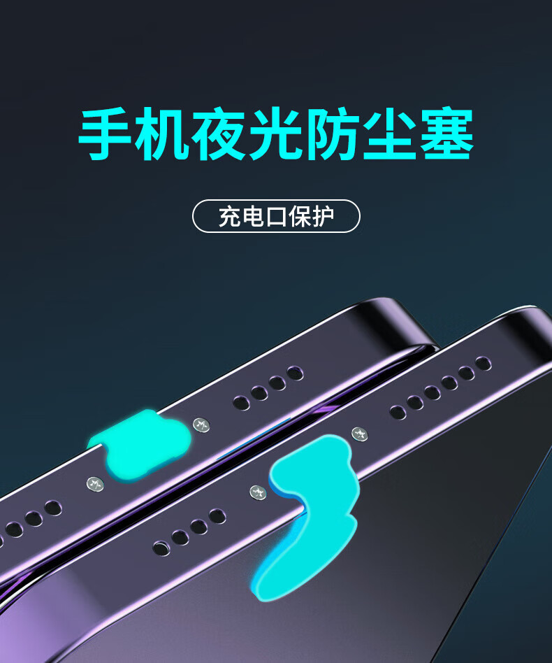 Suitable for Apple 15 mobile phone charging port dustproof plug iPhone14promax Android Huawei type-c anti-lost luminous dustproof plug suitable for type-C interface 2 pieces