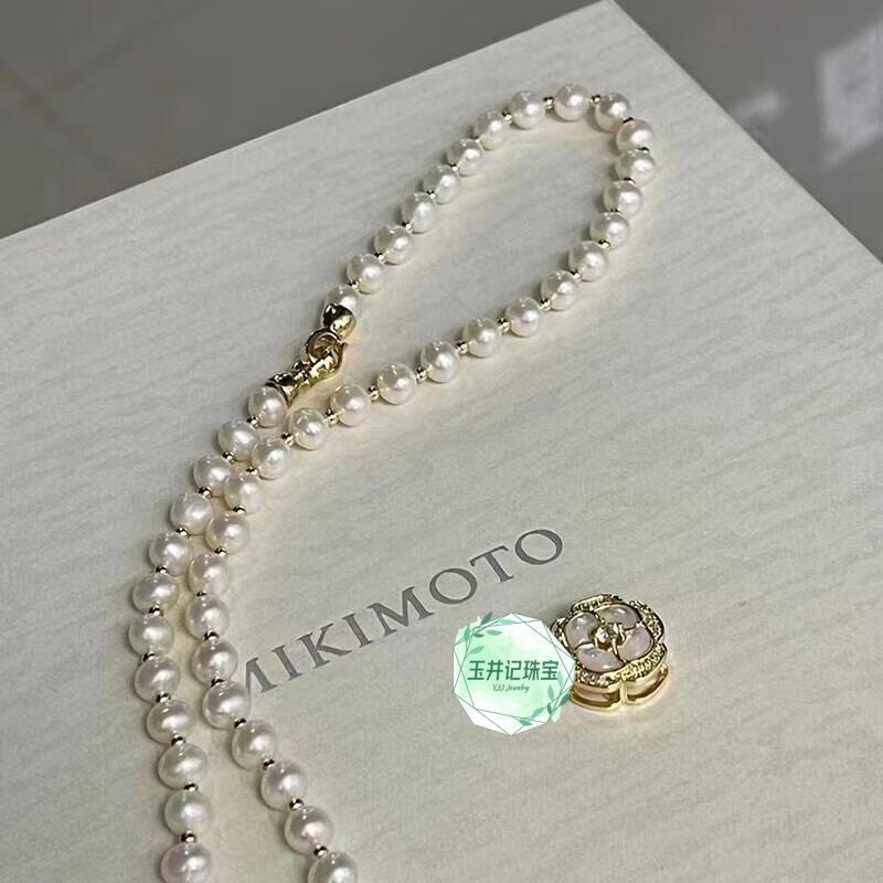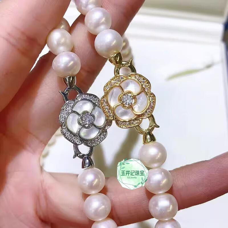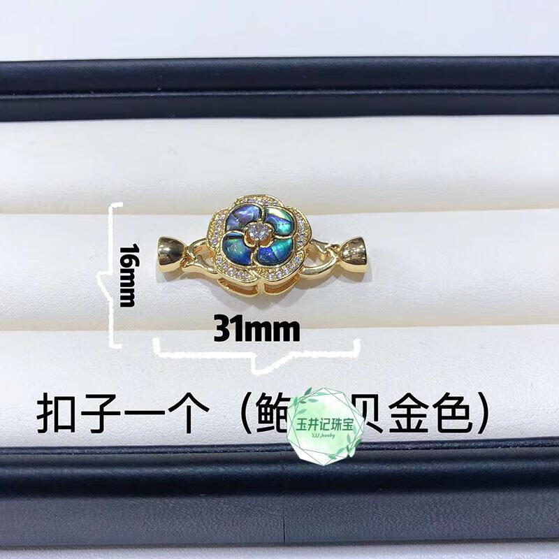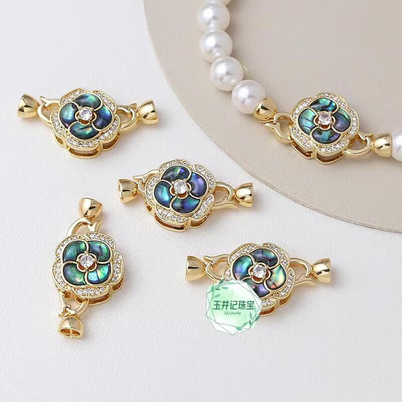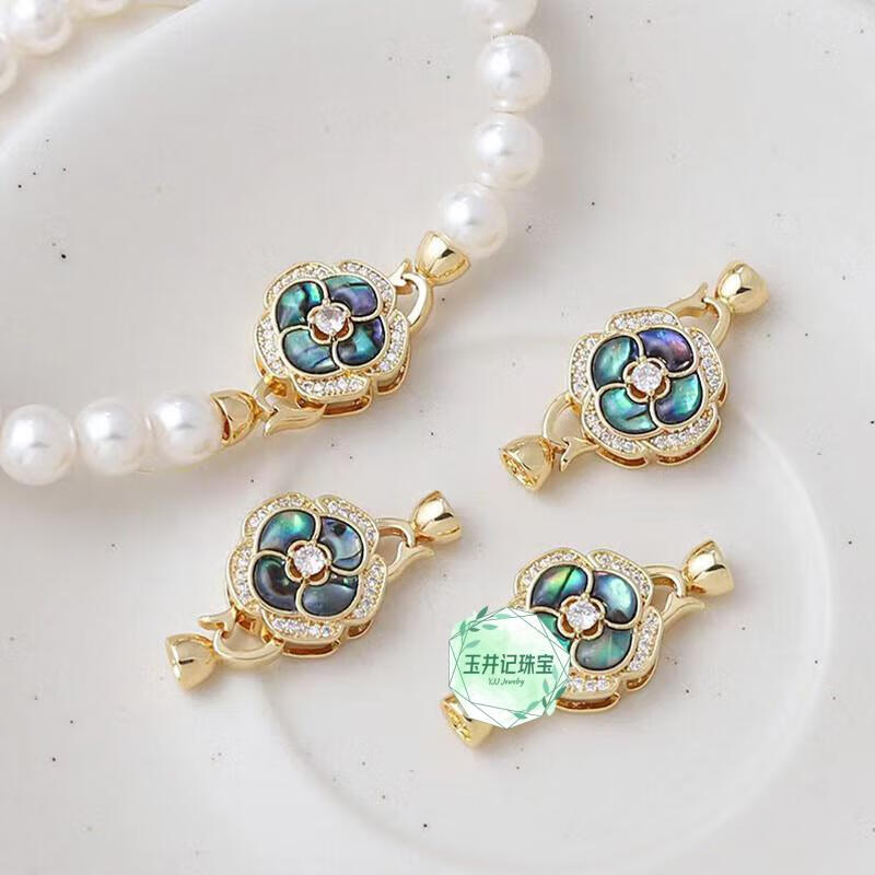 Yujingji Fat Donglai same style 18K gold pearl necklace buckle head natural abalone camellia handmade jewelry bracelet buckle with gold and white shell accessories