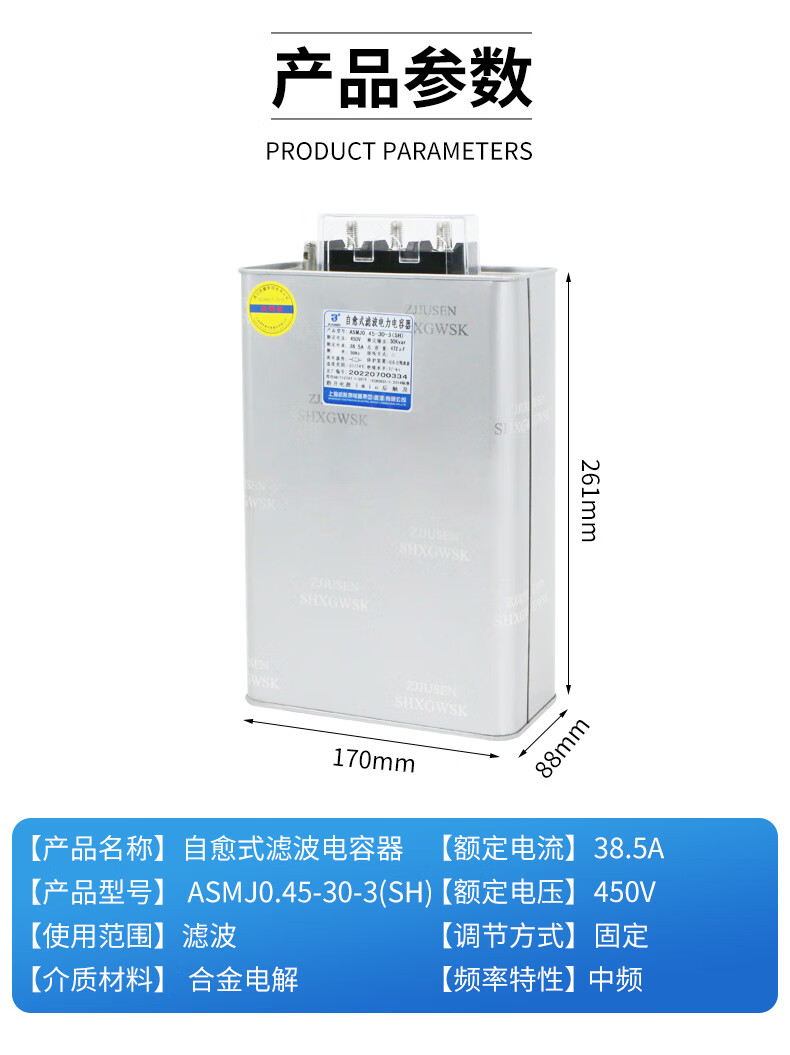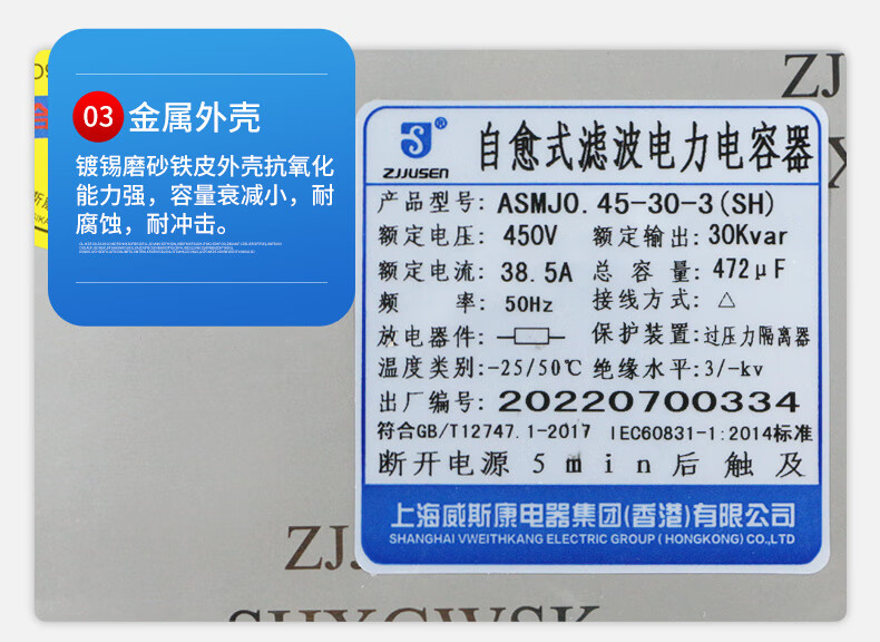 Viscon anti-harmonic self-healing power parallel compensation filter capacitor ASMJ0.45-30-3 20 ASMJ0.45-30-3