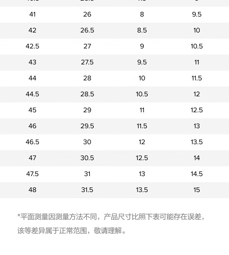China (cm) 36 - 37 38 - 39 40 - 42 43 - 44 45 - 47