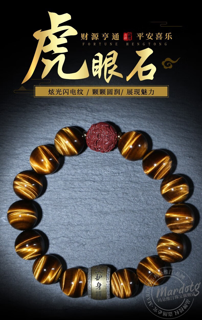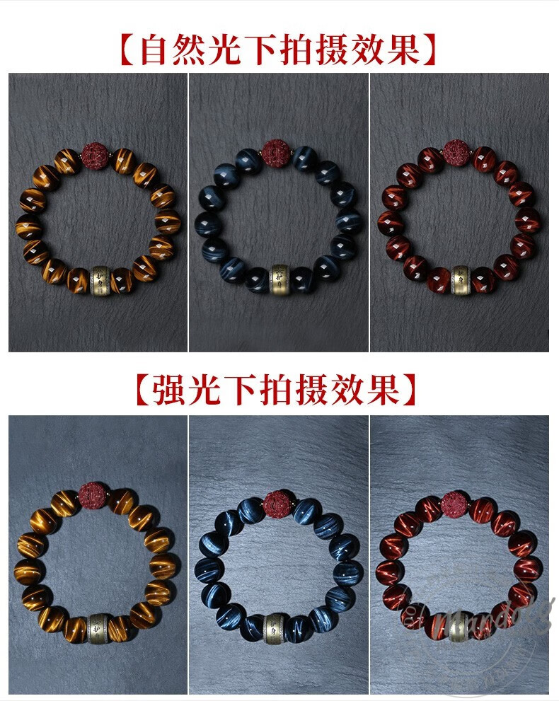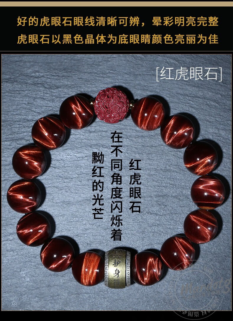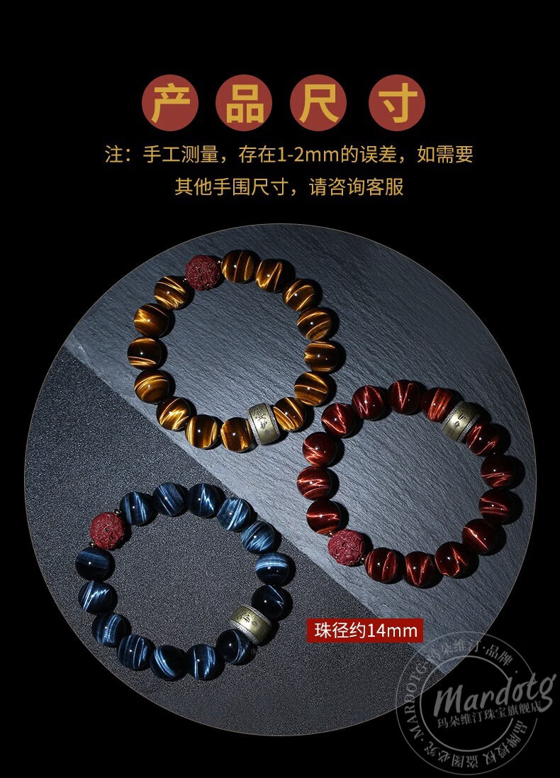 MARDOTG red, blue, and yellow tiger eye stone bracelet for men, amulet for the year of life, Pixiu bracelet, Buddhist beads, jewelry gift, red tiger eye stone, 18MM bead diameter