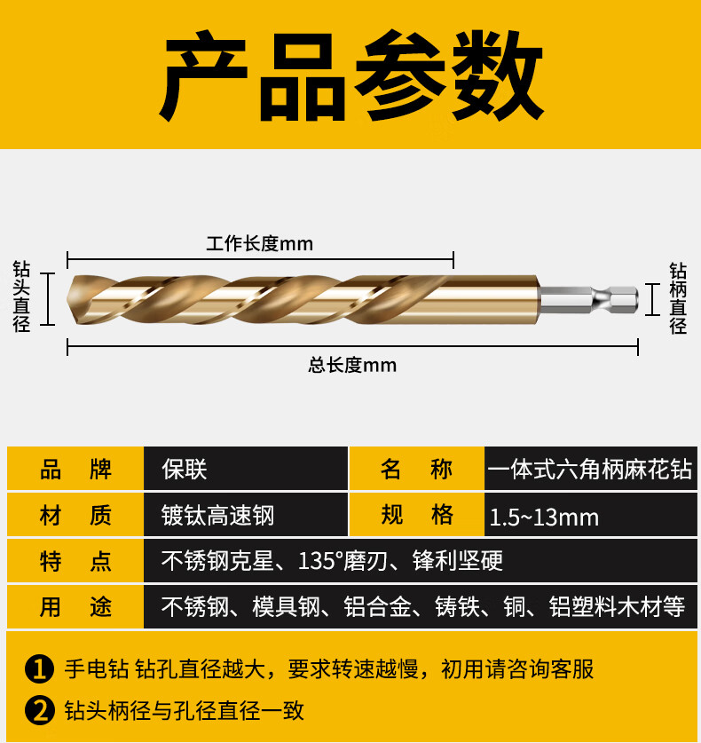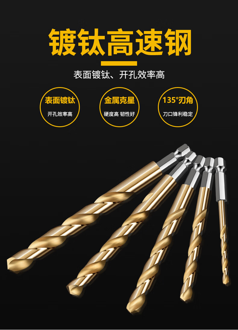 Baolian hexagonal handle titanium-plated twist drill bit stainless steel metal special hole opener straight handle high-speed steel fully ground drill bit 8.0mm