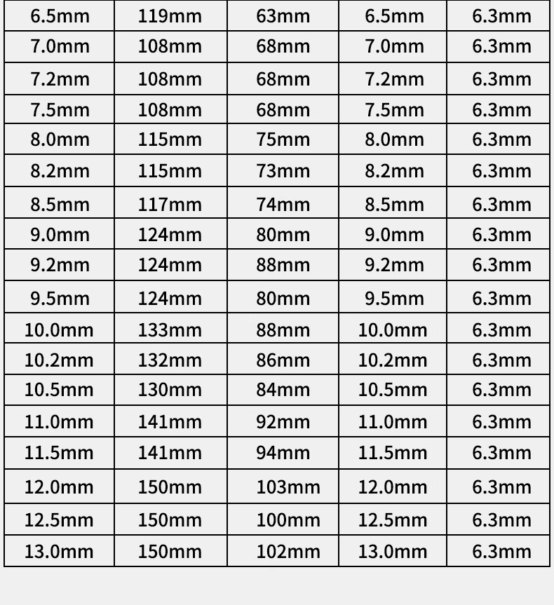 76.2 81.3 86.4 91.5 96.5 101.6 106.7 112 117 122 127 132 137 142