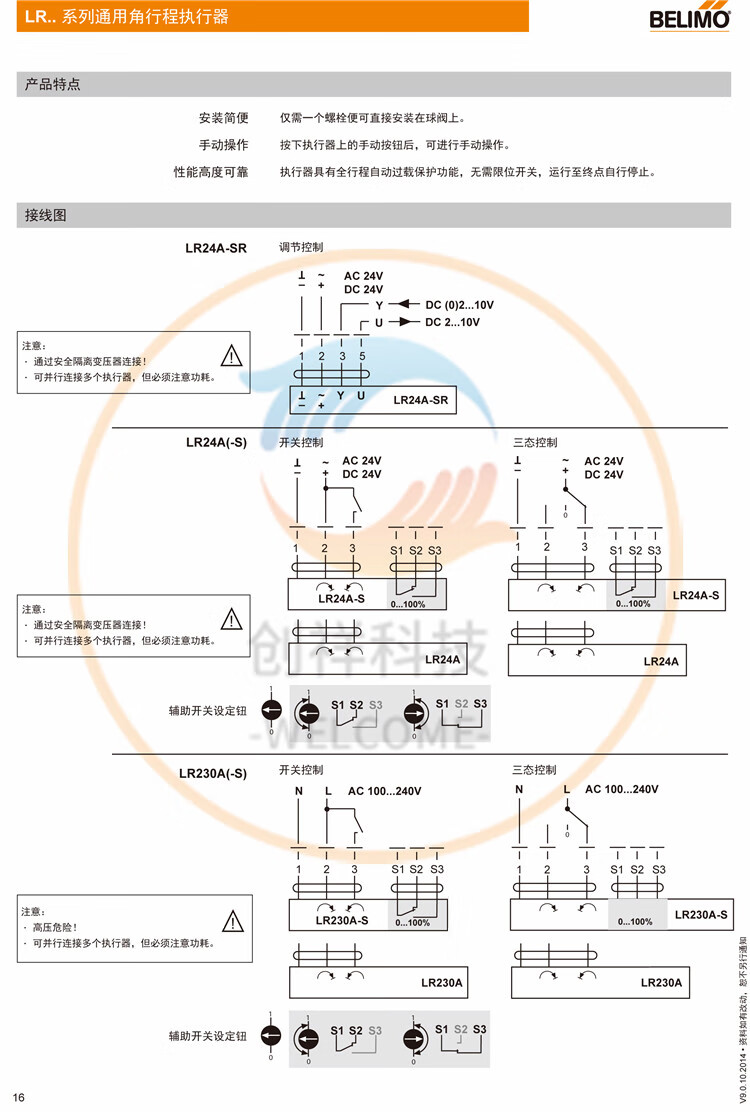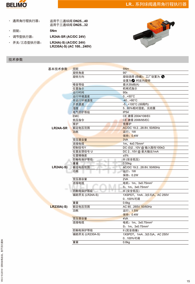 Belimo LR/NR24A/230A/24A/-S/-SR electric proportional adjustment switch ball valve water valve actuator LR24A 24V switch volume 5NM