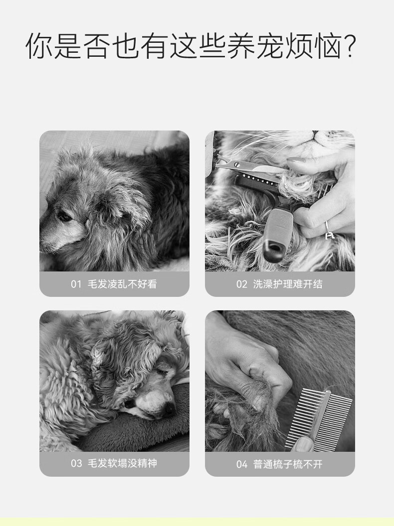 Hippie dog (hipdog) pet grooming comb, cat comb, dog hair knotting needle comb, Teddy Pomeranian combing special dog grooming supplies collection, square cake Milo gray air cushion medium size, universal for dogs and cats