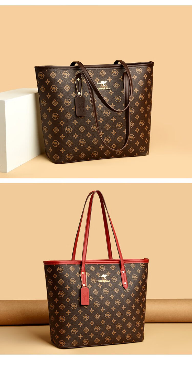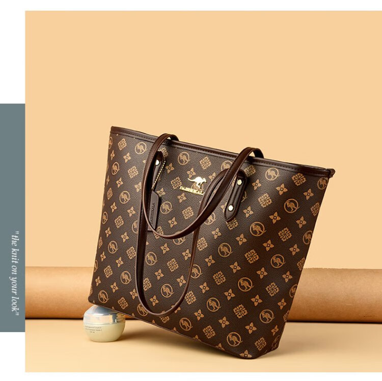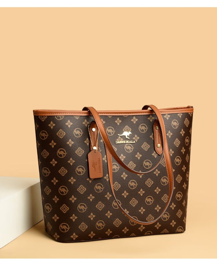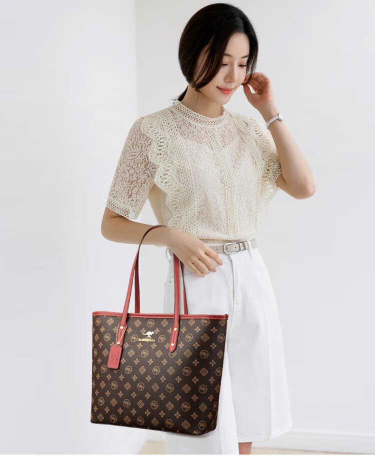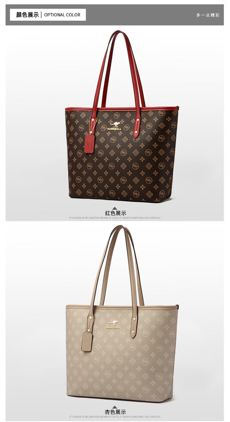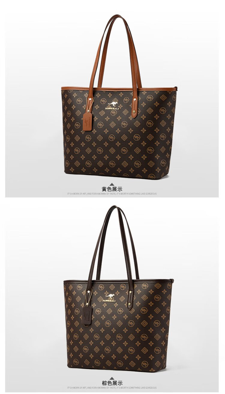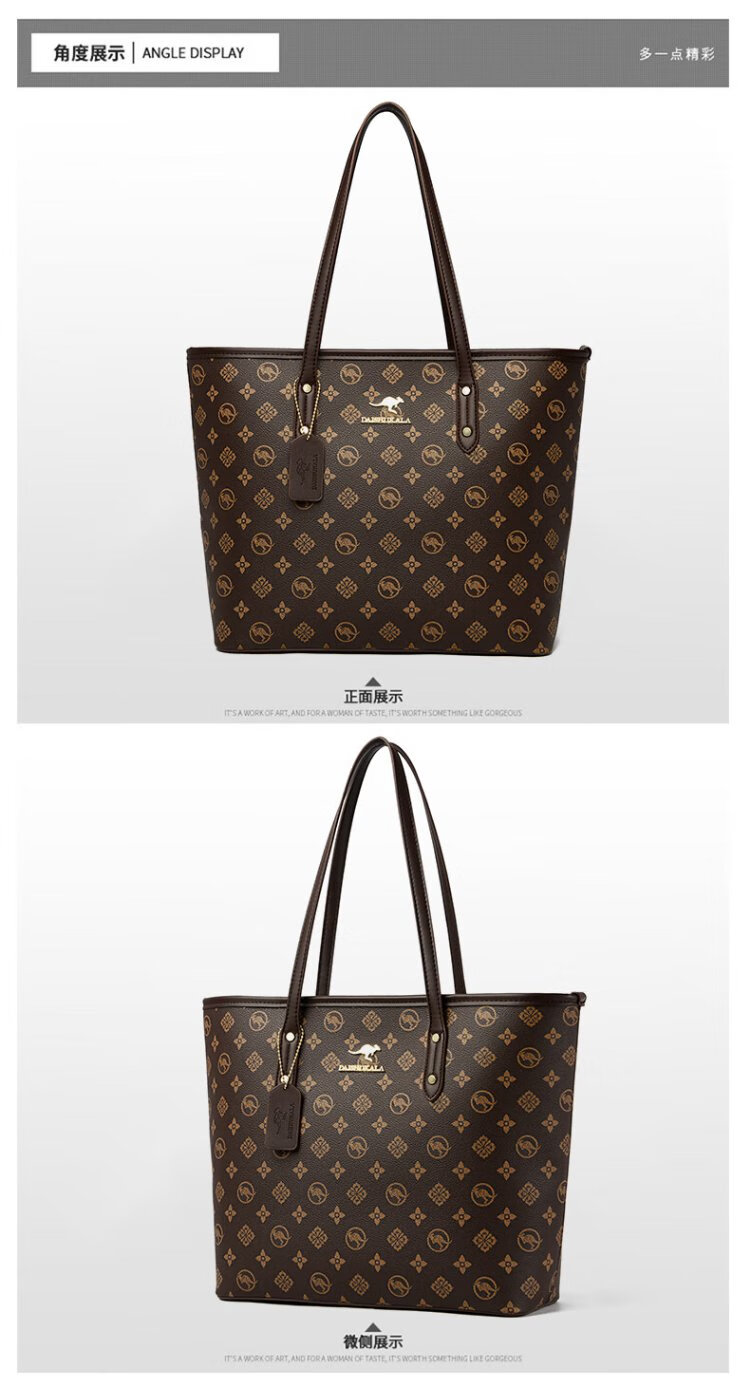 Kangaroo Kara gives mom a genuine leather shoulder bag for women on Mother's Day, tote bag, large capacity 2025 new European and American commuter handbag trendy brown (gift box + hand bag card holder) extra large bag length 31-thickness 12-height 29 cm