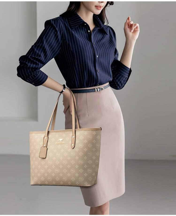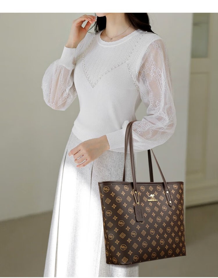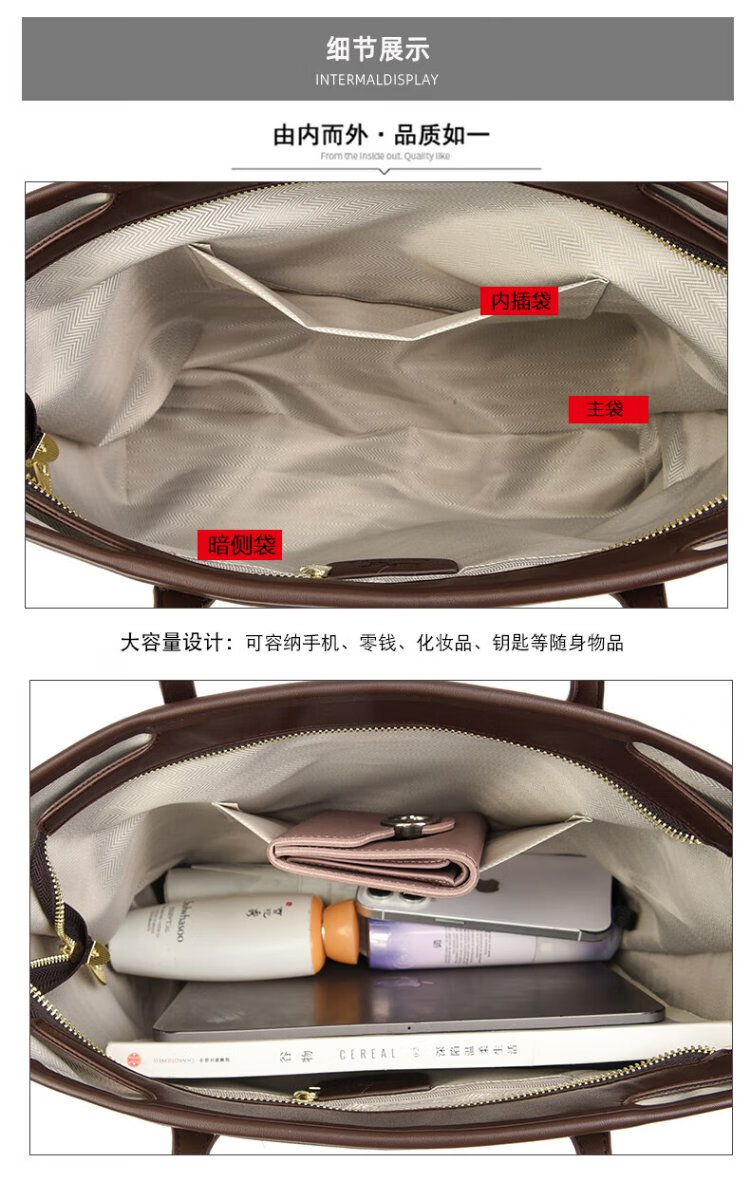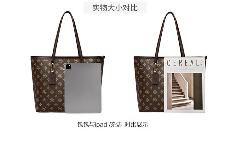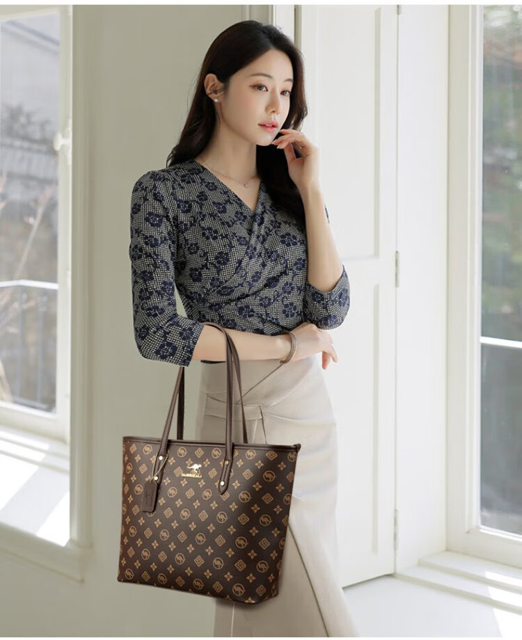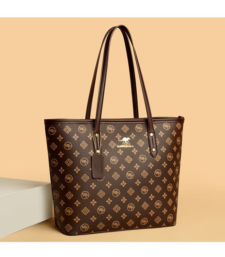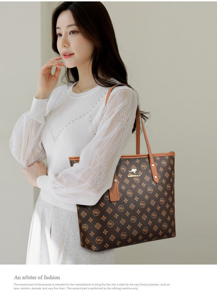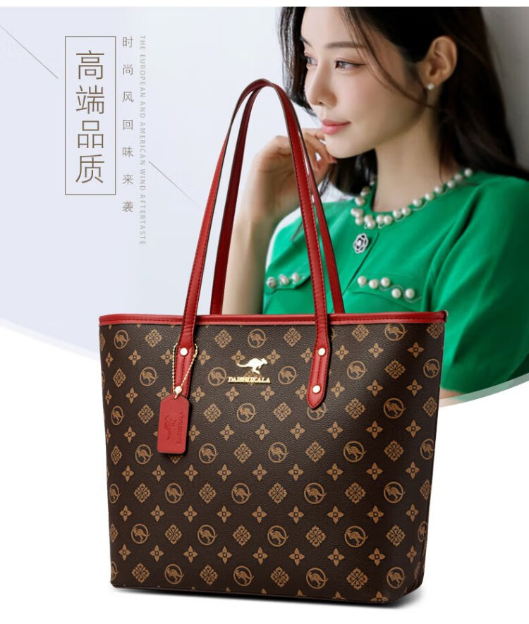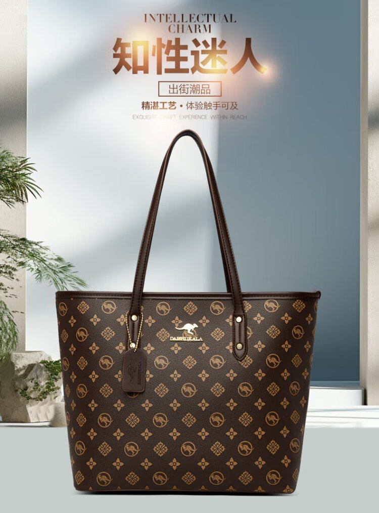 Kangaroo Kara gives mom a genuine leather shoulder bag for women on Mother's Day, tote bag, large capacity 2025 new European and American commuter handbag trendy brown (gift box + hand bag card holder) extra large bag length 31-thickness 12-height 29 cm