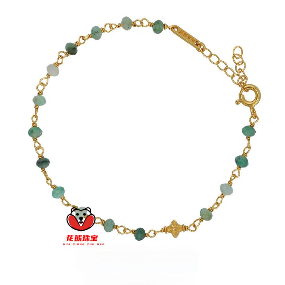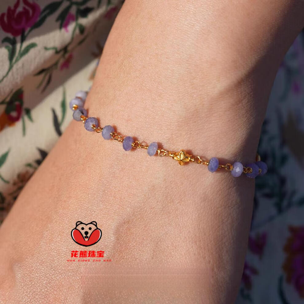 Fat Donglai quality tanzanite bracelet four-leaf clover and emerald 925 silver gold-plated high color retention micron gold-plated tanzanite one-size-fits-all