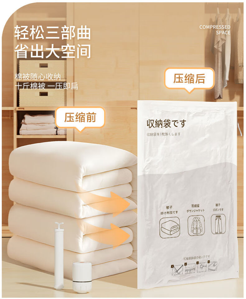 De Shuangman vacuum compression storage bag for clothes, quilts and down jackets, special air-extracting waterproof and moisture-proof clothes and quilt bags, 13 pieces of electric pumps, 8 extra large + 4 super + electric pumps