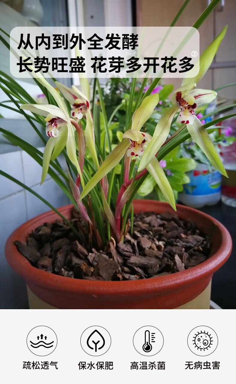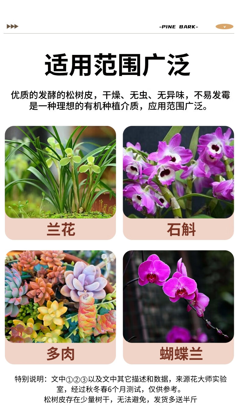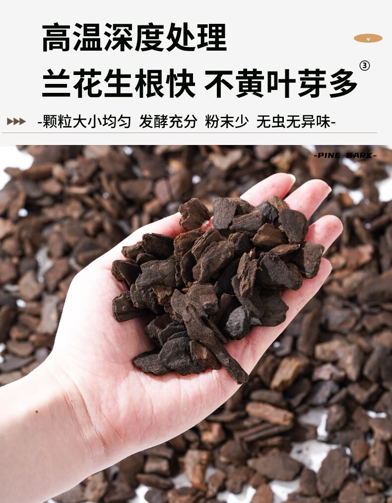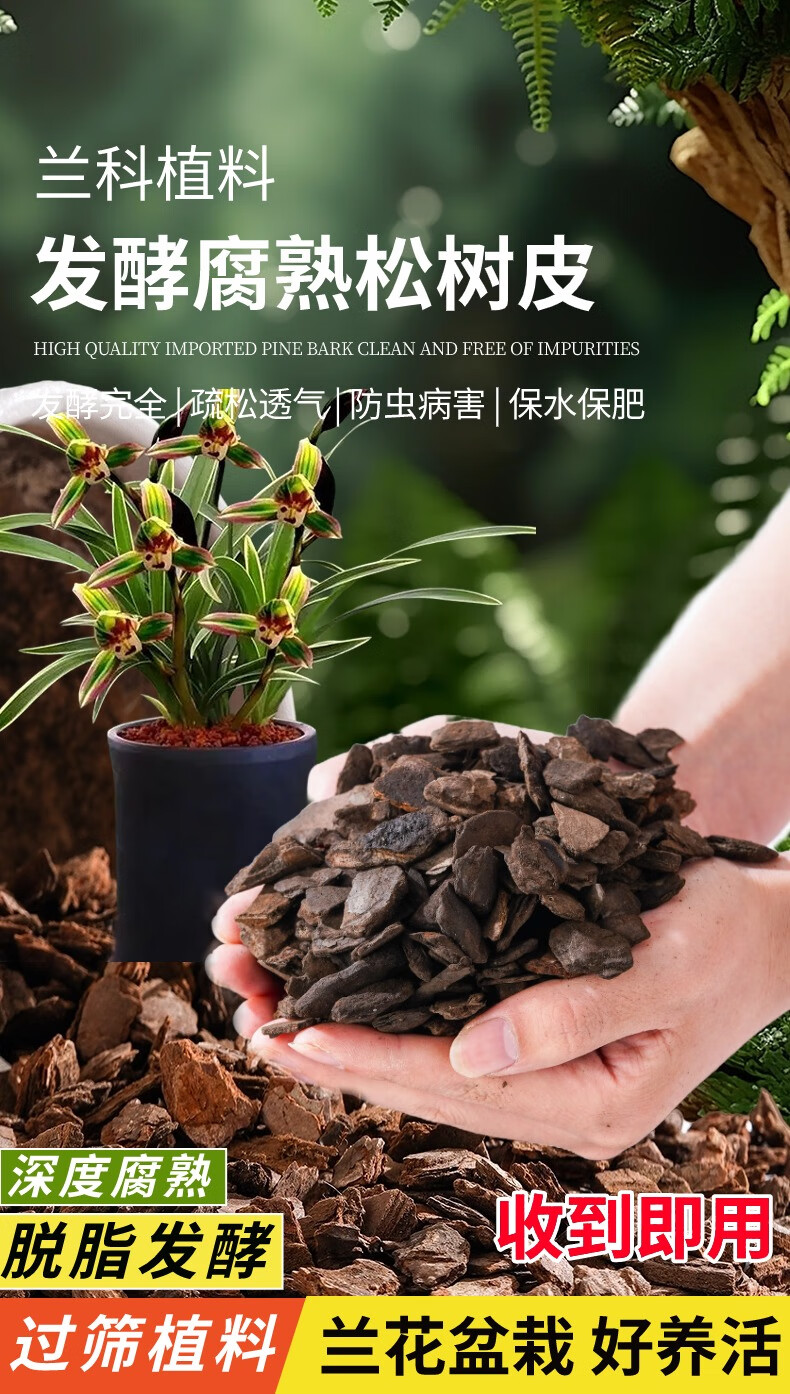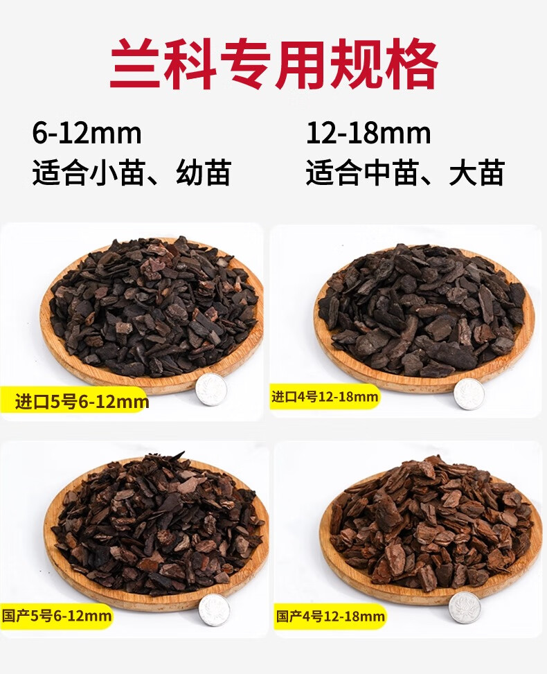 Flower Master orchid planting material, fermented decomposed pine bark, imported from New Zealand, pine scale Phalaenopsis planting substrate, special soil block, domestic fermented bark 6 liters (12~18mm) machine screened to remove impurities
