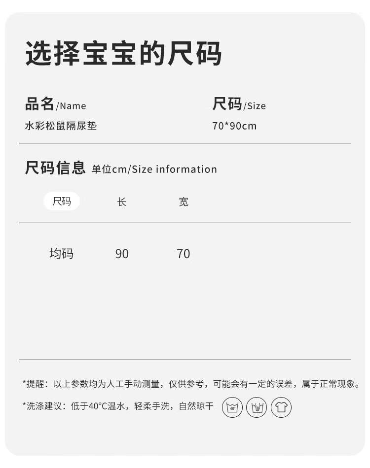 Kordear baby changing pad waterproof and breathable children's baby pure cotton washable mattress menstrual period sheet watercolor squirrel 70*90