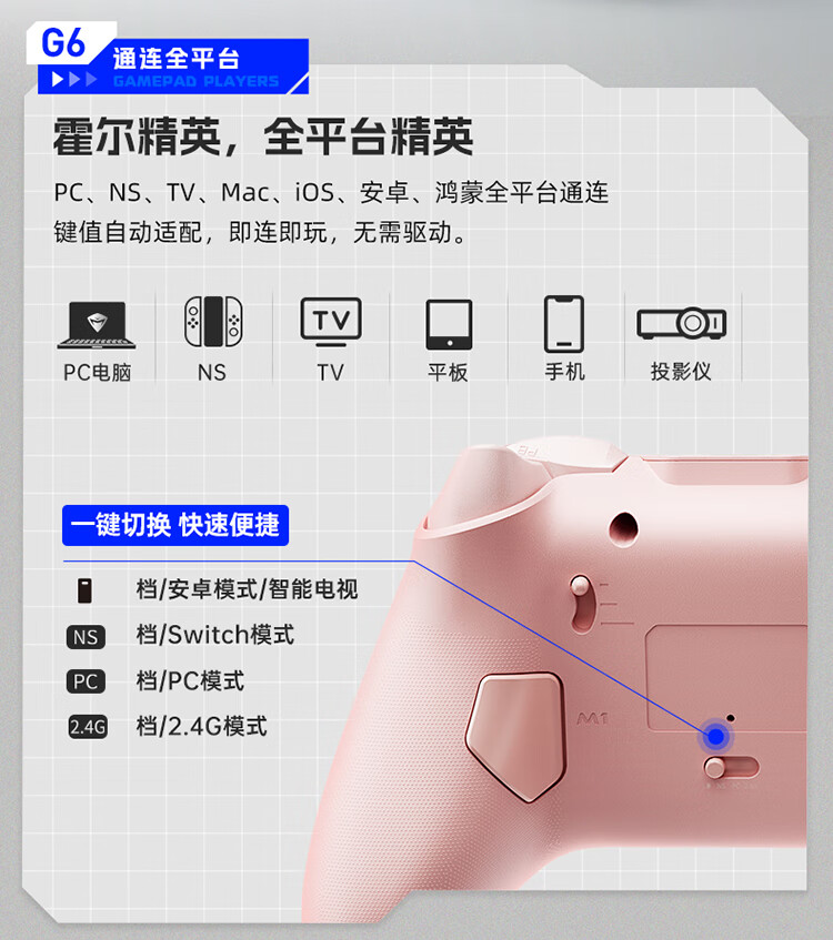 Mechanic G6 Elite Edition Three-mode Bluetooth Wireless Game Controller Full Hall Trigger Somatosensory Computer Switch Mobile TV Tesla Steam Black Myth Wukong Three-mode G6 Elite Edition-Black