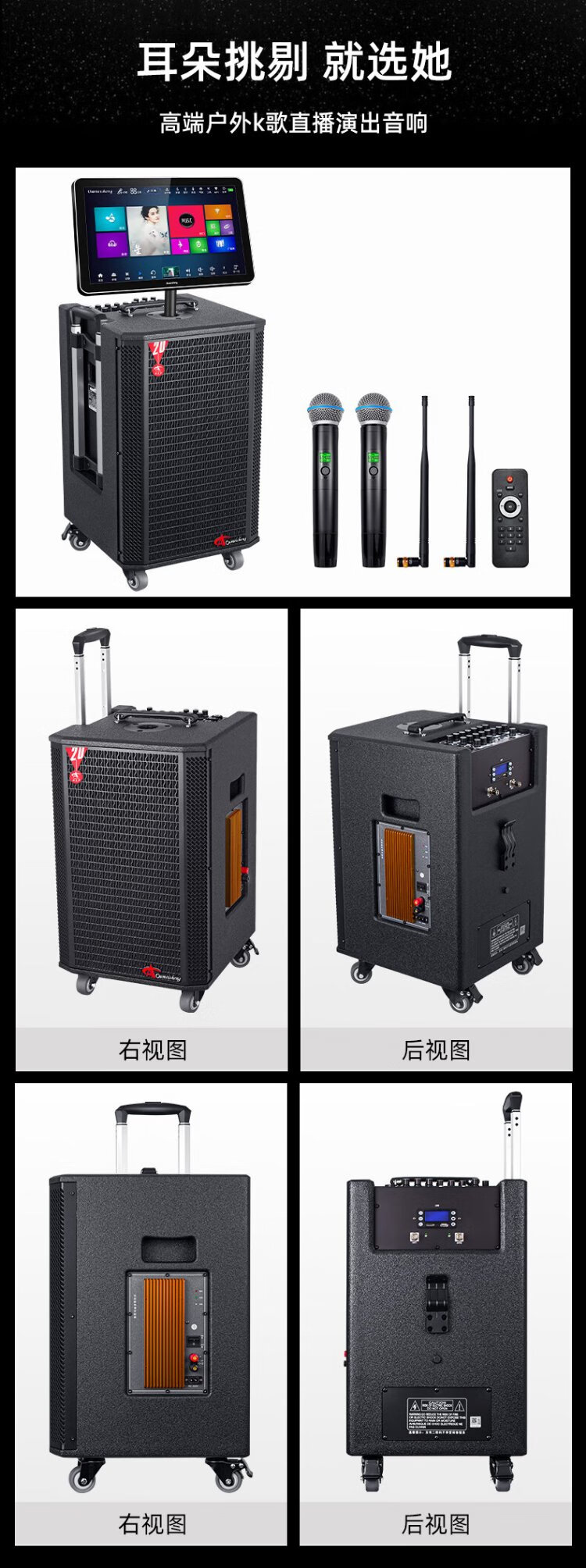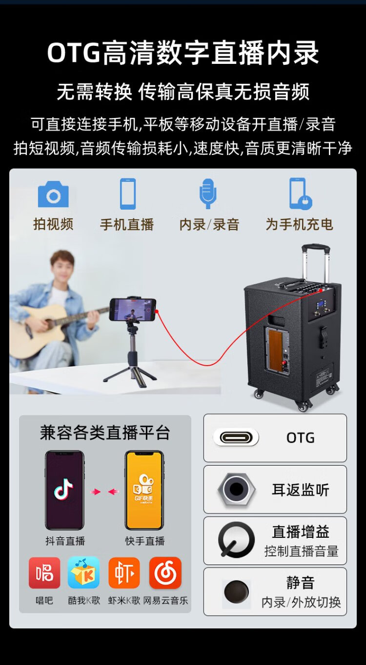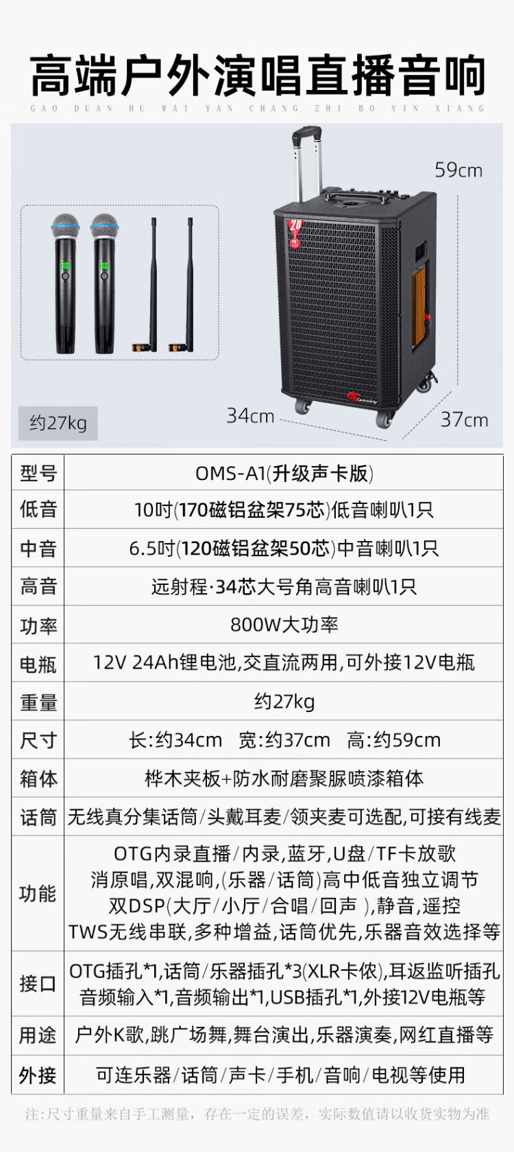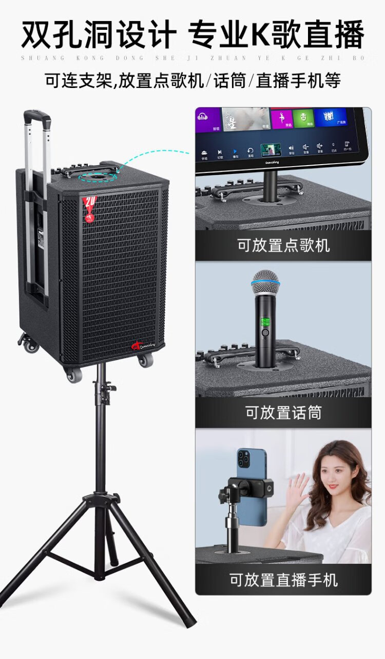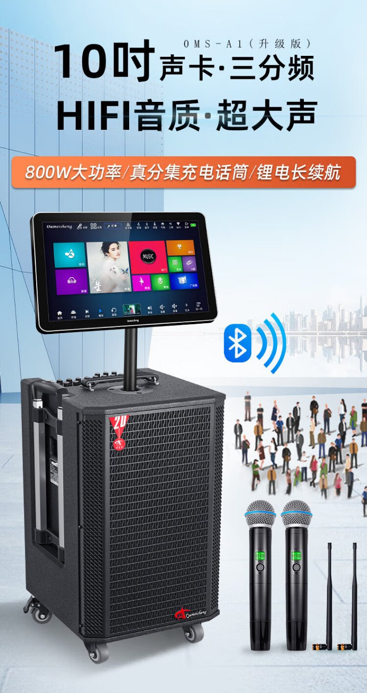 European and American high-end outdoor K-song dedicated sound card audio all-in-one machine professional singer live broadcast home KTV square dance performance high-power mobile trolley Bluetooth speaker with microphone A1 10-inch subwoofer 800W 2* headset + gift package