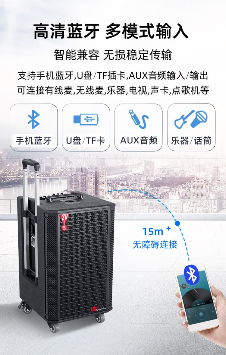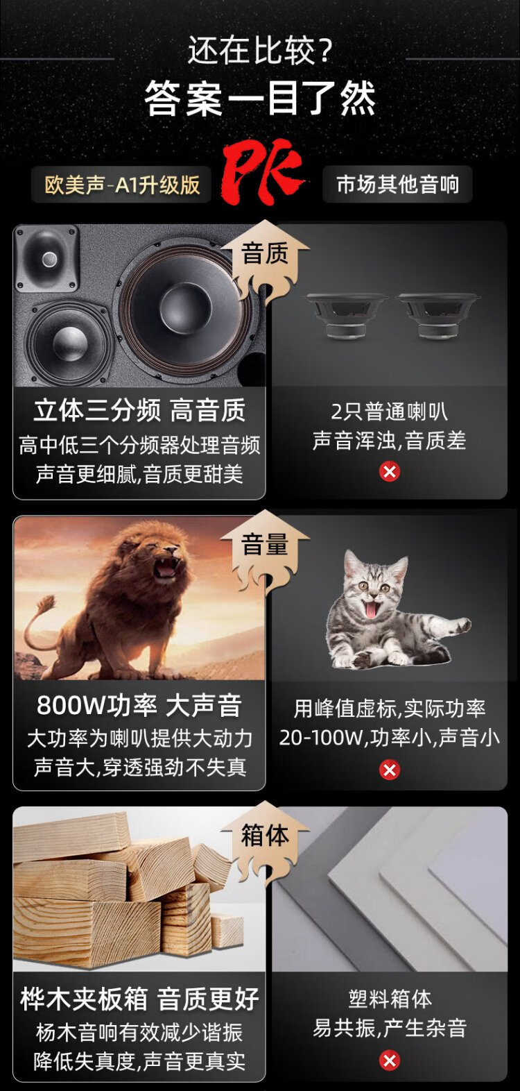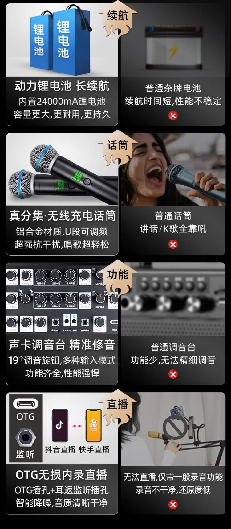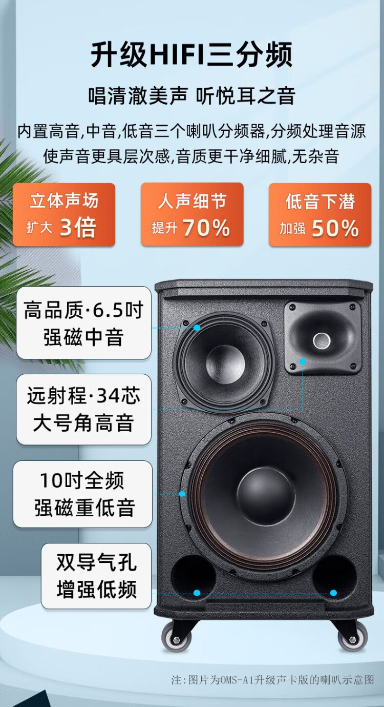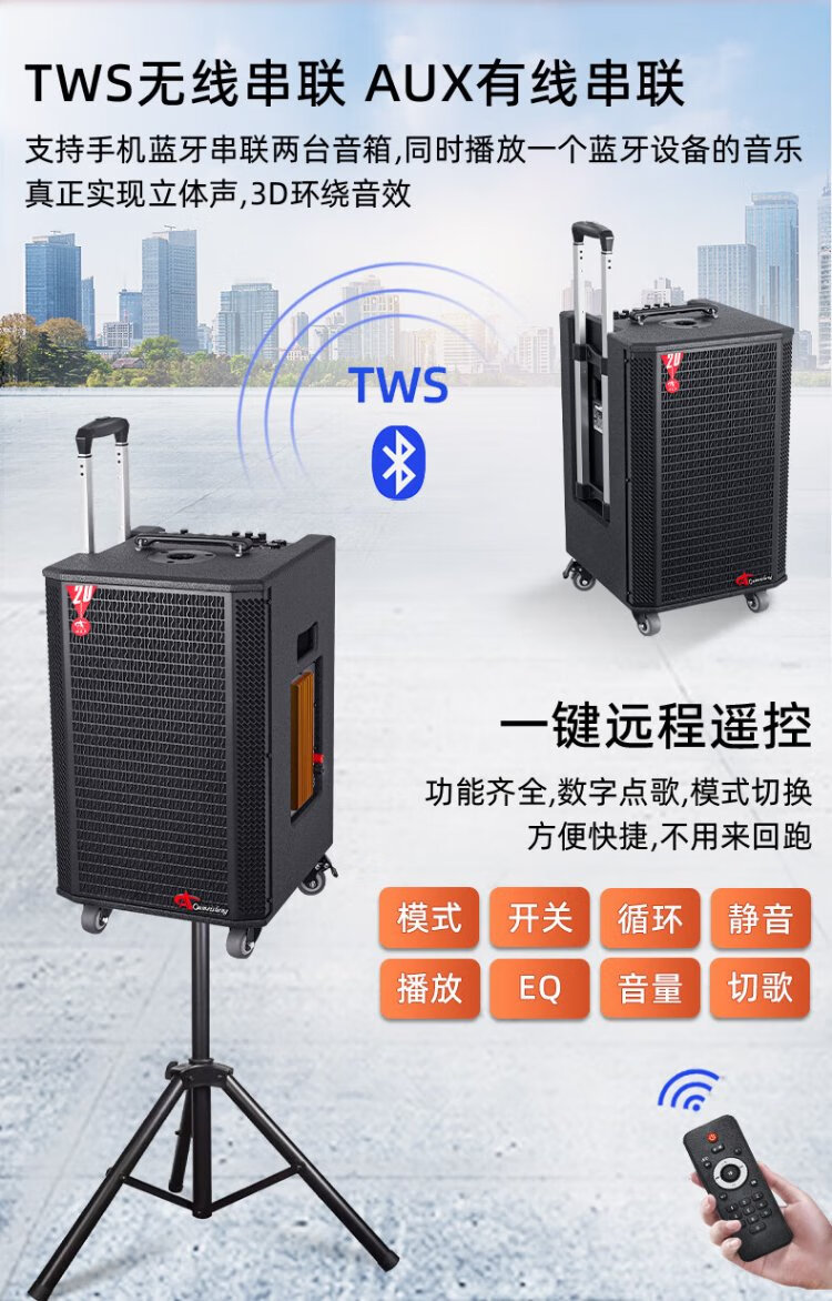 European and American high-end outdoor K-song dedicated sound card audio all-in-one machine professional singer live broadcast home KTV square dance performance high-power mobile trolley Bluetooth speaker with microphone A1 10-inch subwoofer 800W 2* headset + gift package