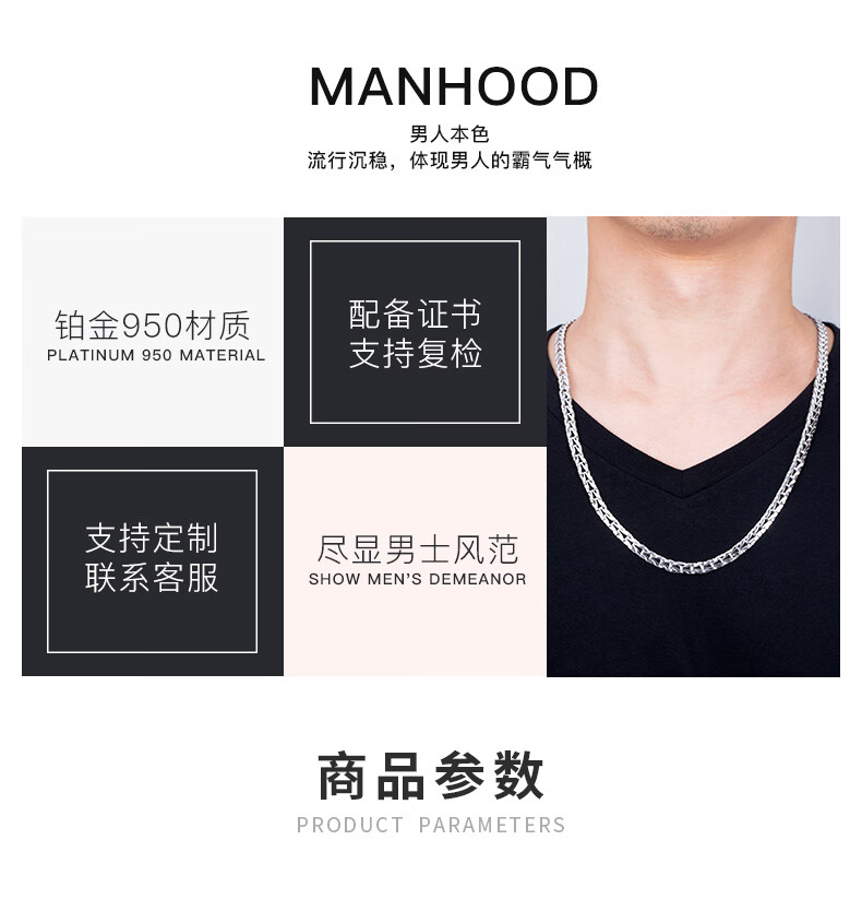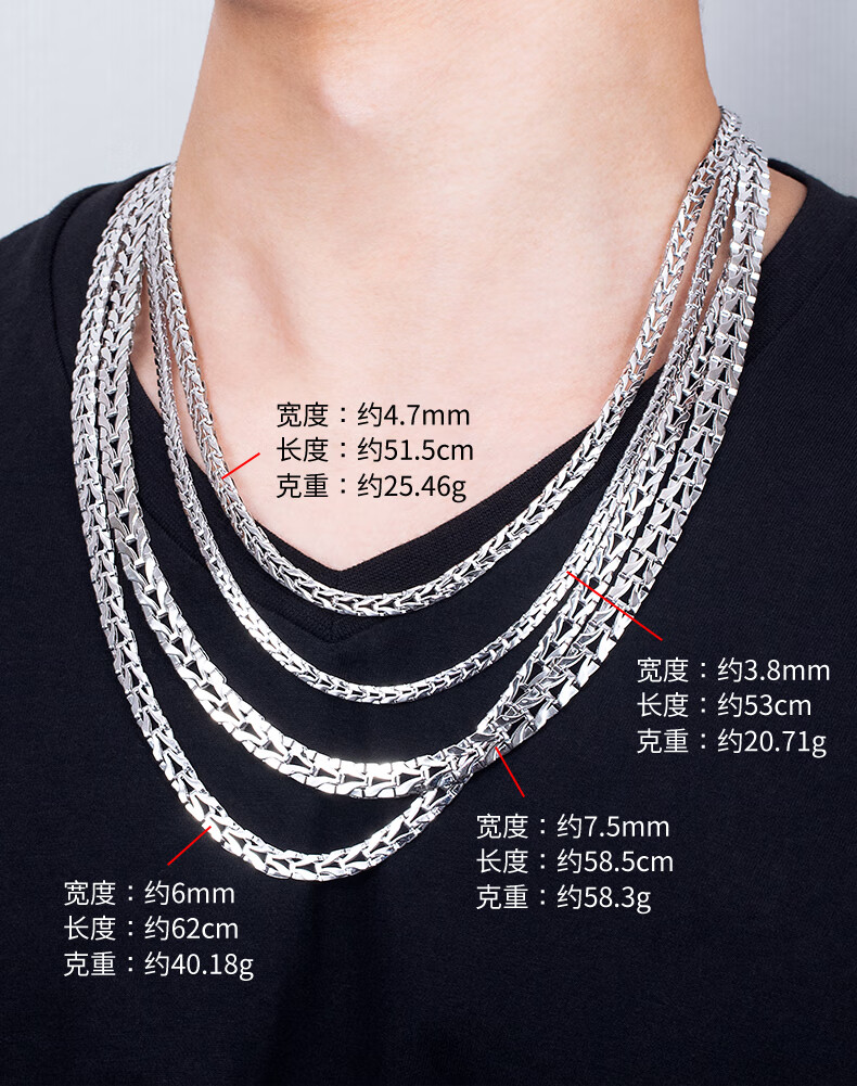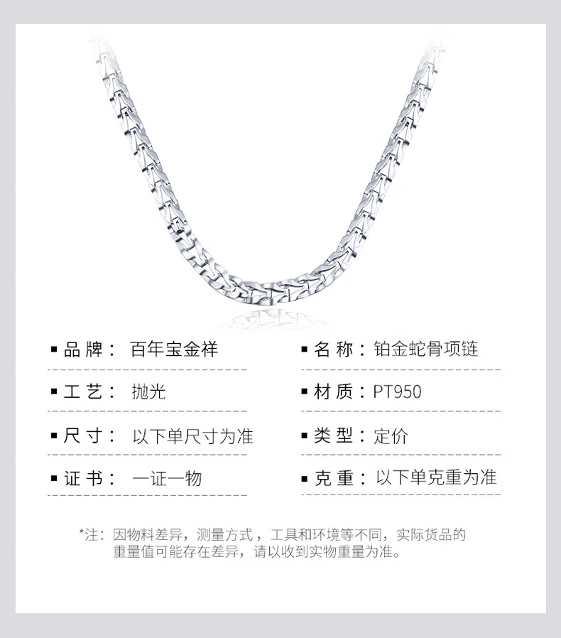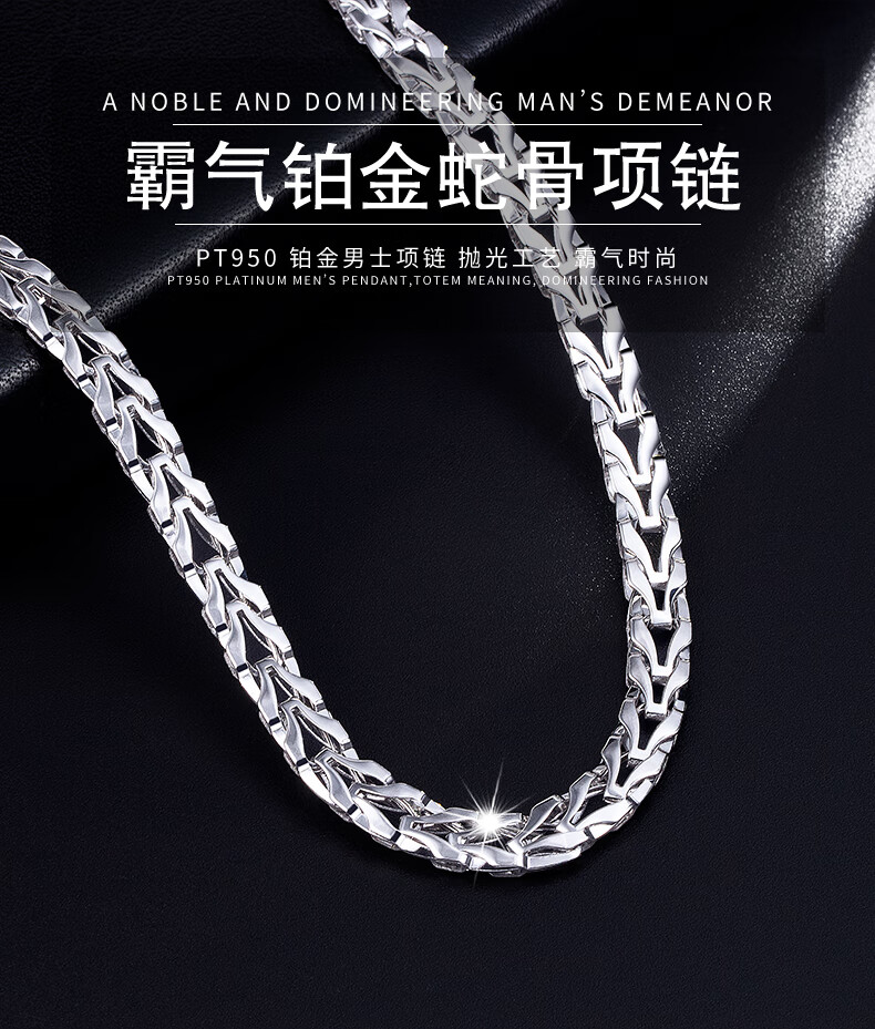 Centenary Baojinxiang PT950 platinum necklace men's platinum necklace men's domineering platinum snake bone chain thick chain 18.05-18.25 grams long 45 cm thick 3.5mm