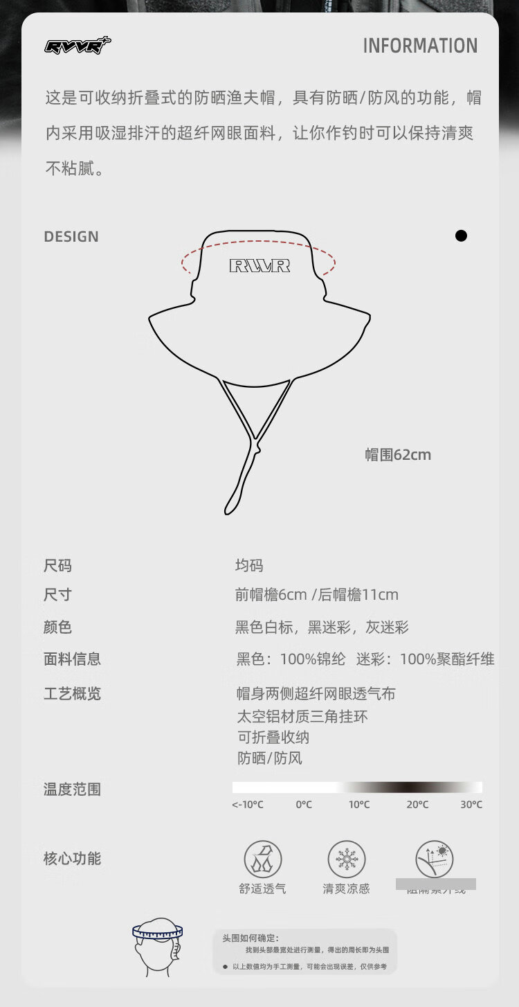 RVVR24 new fisherman hat summer outdoor sun protection breathable and comfortable lure fishing hat black