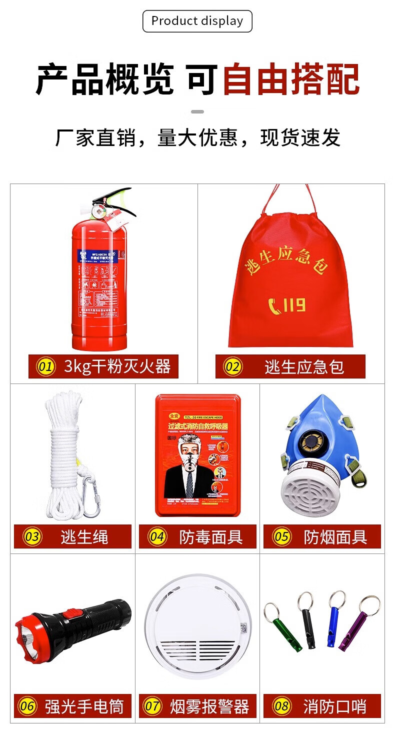 Firefighting four-piece set for rental housing fire equipment emergency kit household fire extinguisher three-piece set fire rescue escape gas mask (rental housing)