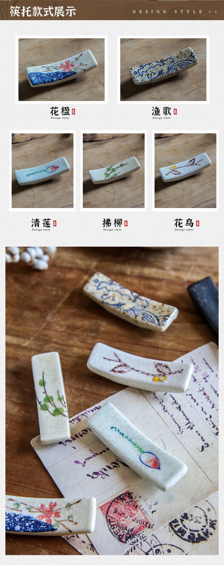 Retro chopstick holder inside and outside the house, multi-purpose ceramic chopstick holder, household Japanese-style table spoon, public chopsticks spoon holder, hotel commercial chopstick pillow, family pack, 4 pieces of Liuli style