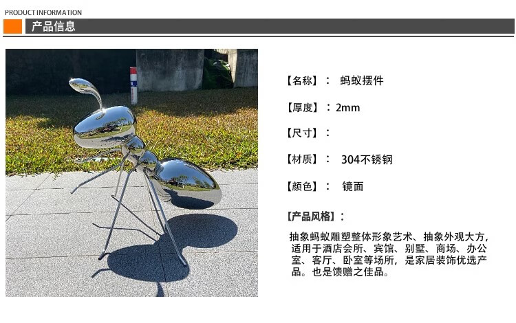 Stainless steel mirror ant sculpture modern creative metal outdoor garden landscape abstract simple decoration ornaments Type A Deposit