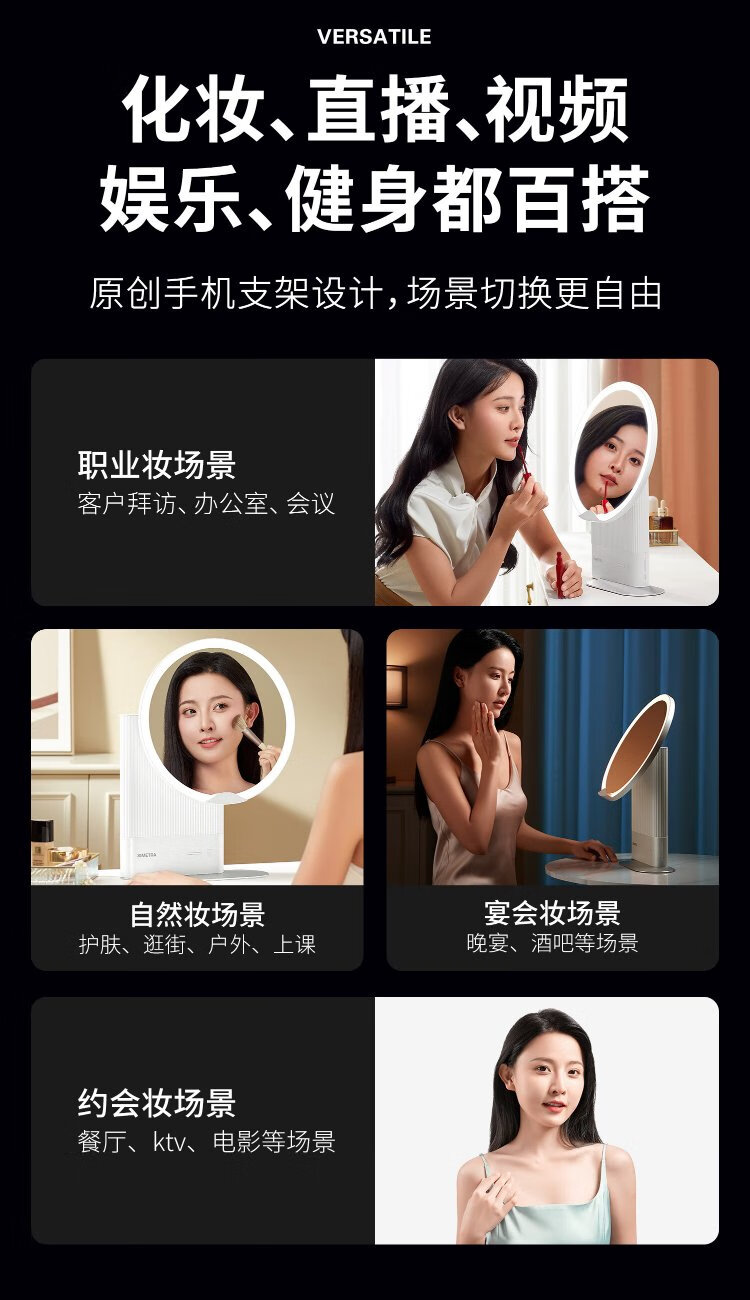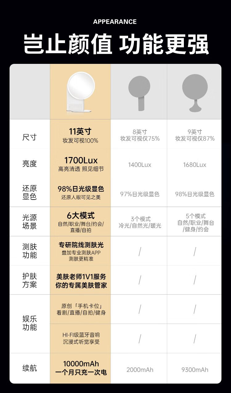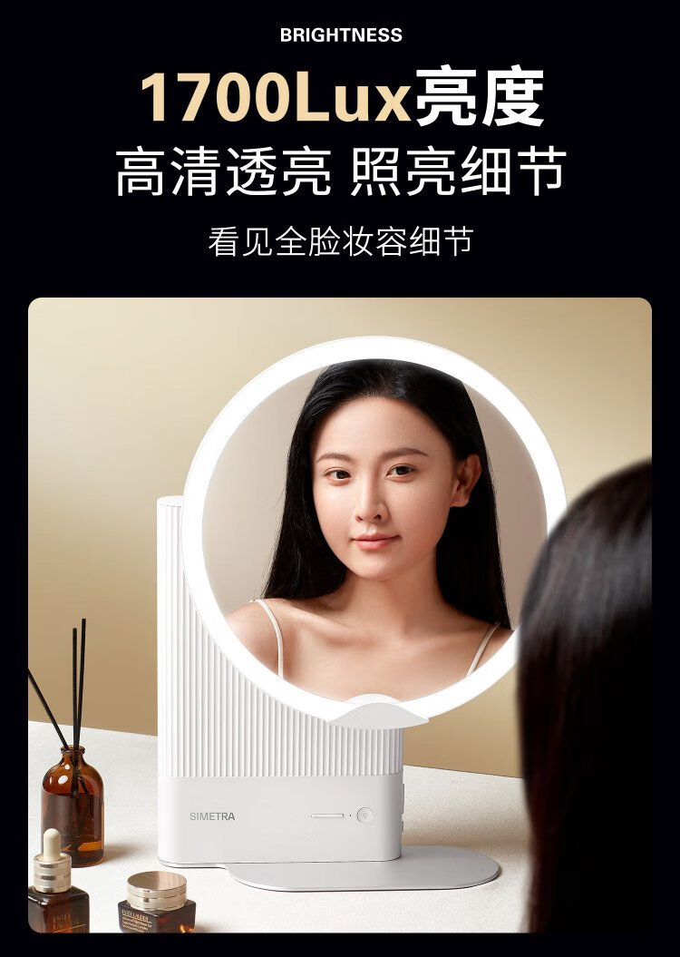 Xijing AI Smart Skin Beauty Mirror LED Cosmetic Mirror Light Luxury Desktop High Definition Fill Light Home Beauty Dressing Mirror Cold and Warm Light White Light Bluetooth HIFI Speaker Gift for Girls Smart Skin Beauty Mirror Pearl White