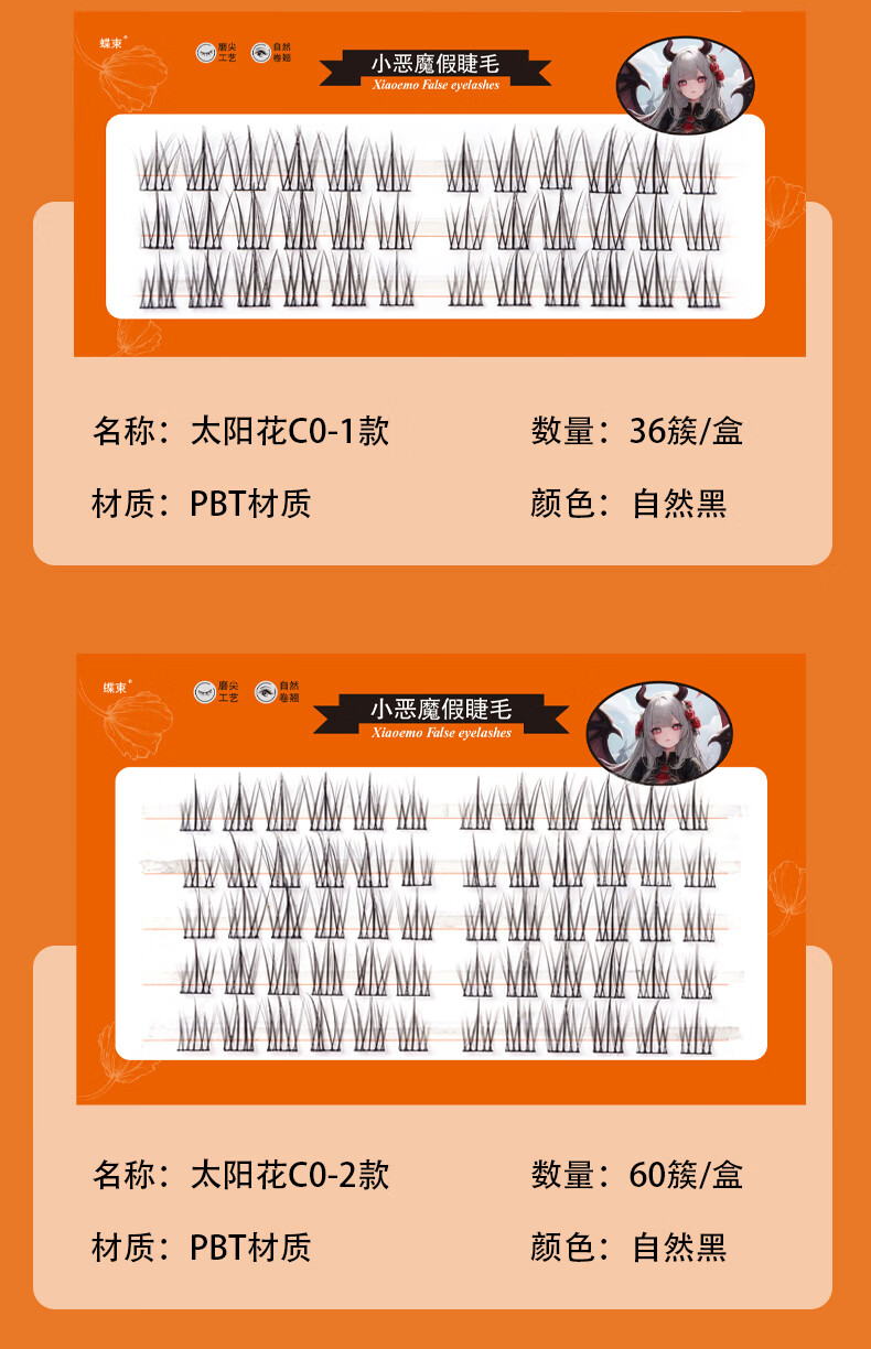 Little Devil False Eyelashes Female Sunflower Trilogy Natural Simulation Single Cluster Segmented Eyelash Grafting Ten Rows Three Rows One Box + Tweezers Glue 36 Clusters