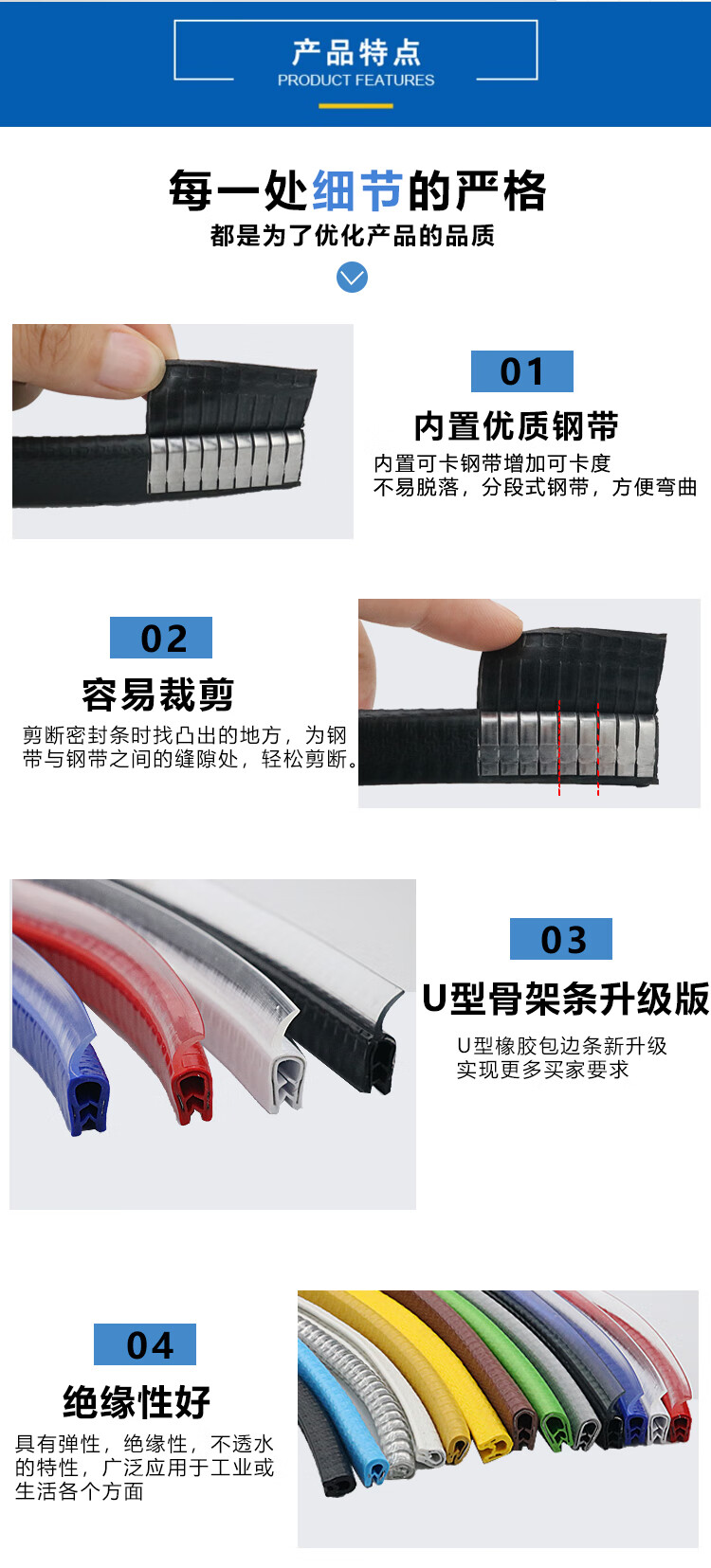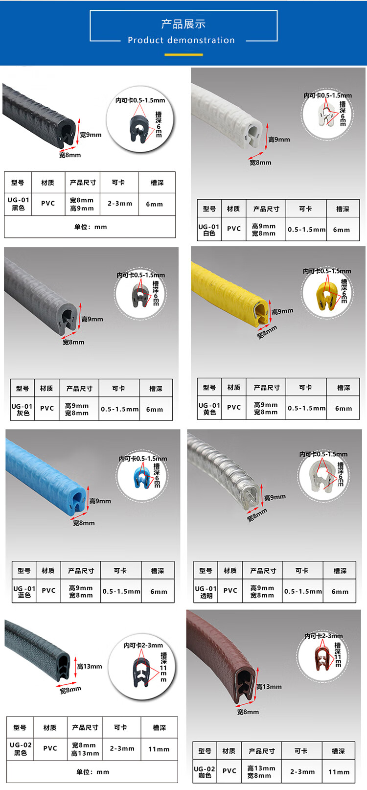 Rubber edge sealing strip plastic stainless steel iron sheet steel plate U-shaped anti-cut hand guard edge sealing strip UG-01 black