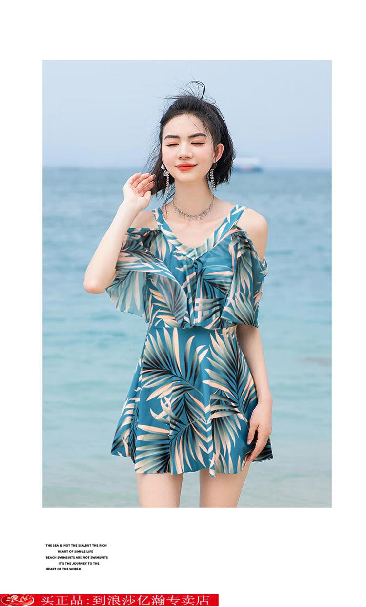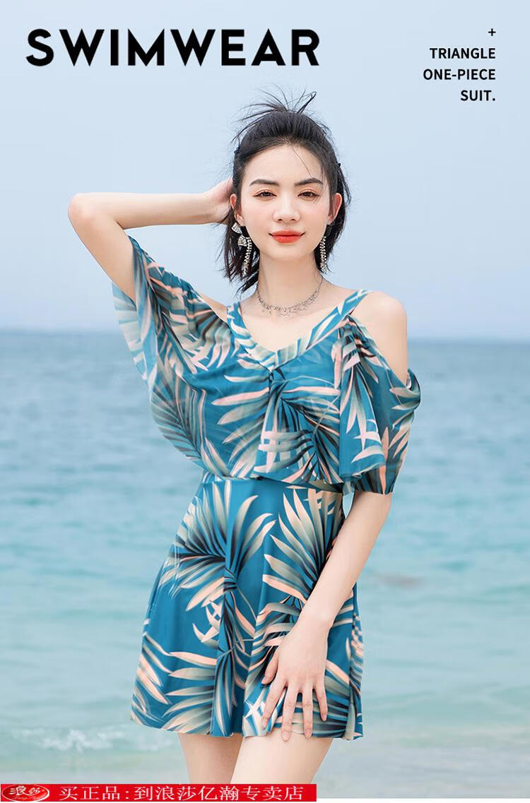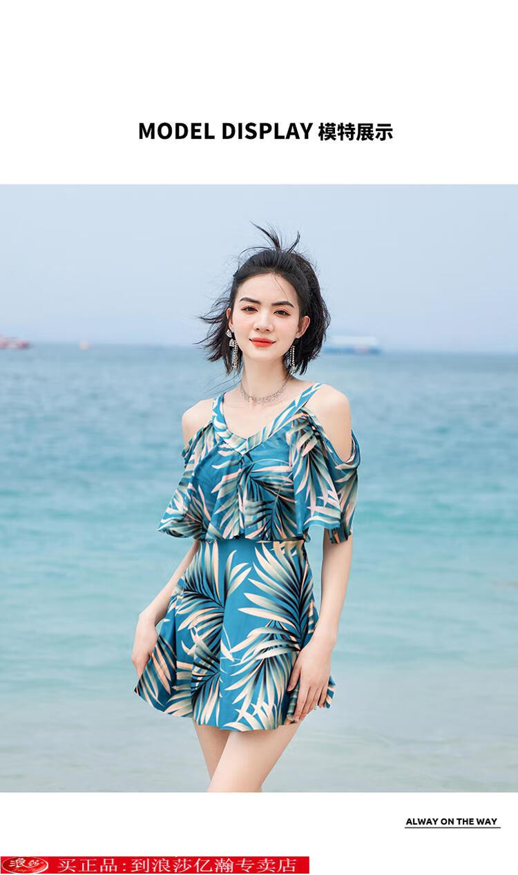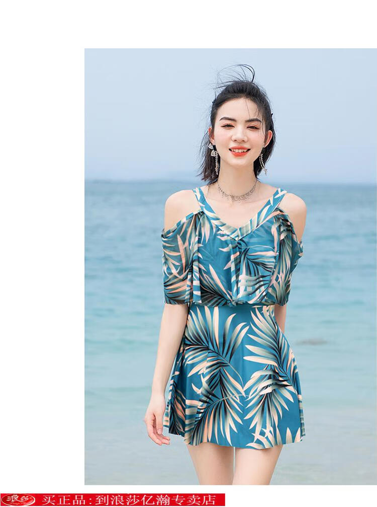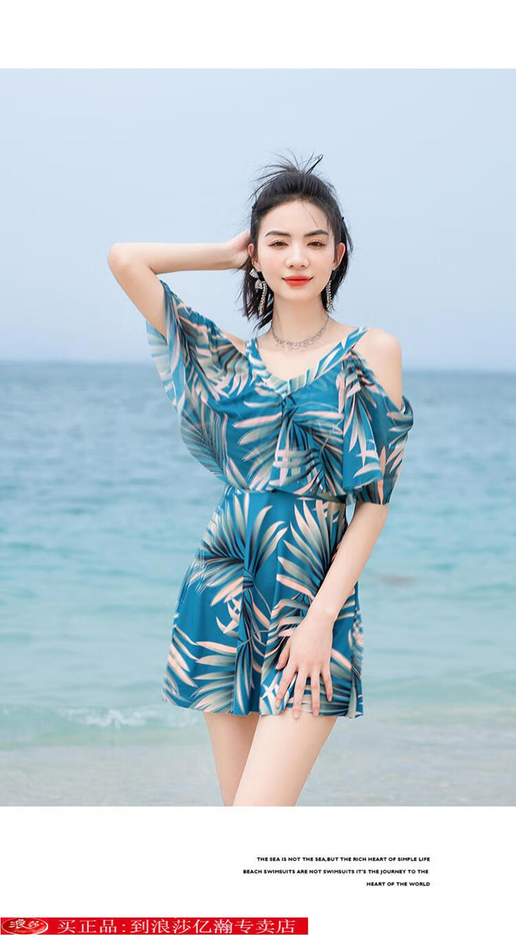 LangSha (LangSha) light luxury high-end swimsuit for female students with split skirt, fashionable, slim, loose and conservative, large size with sleeves to cover belly, quick-drying swim 4599 green 3XL recommended 140-160Jin Jin is equal to 0.5 kg