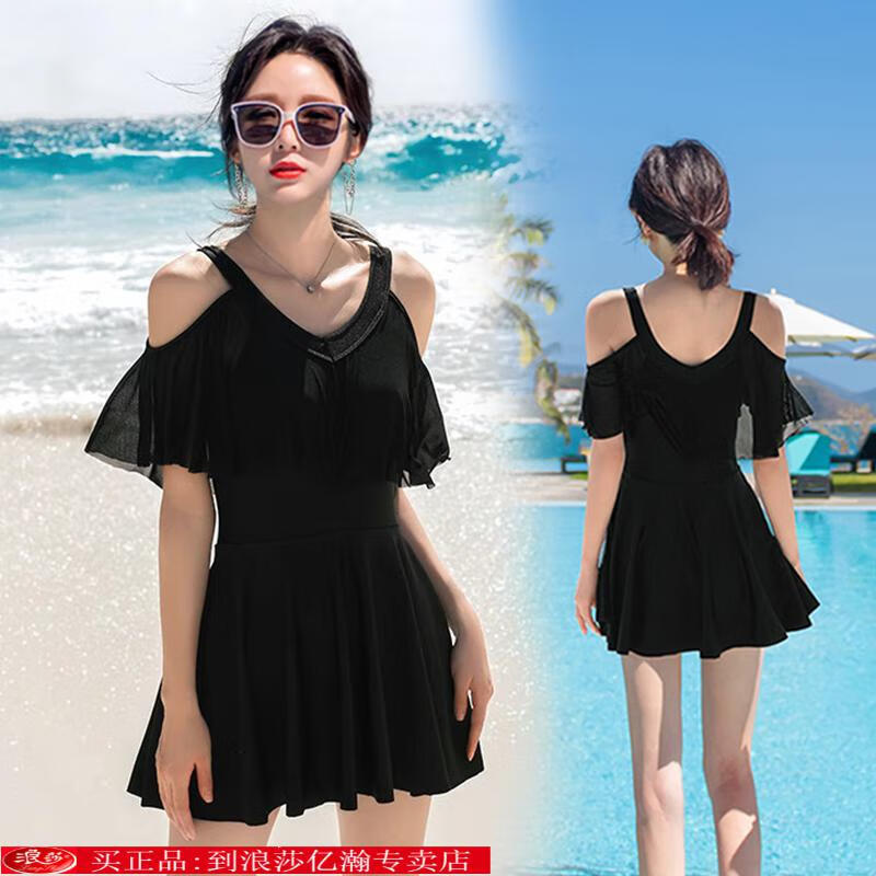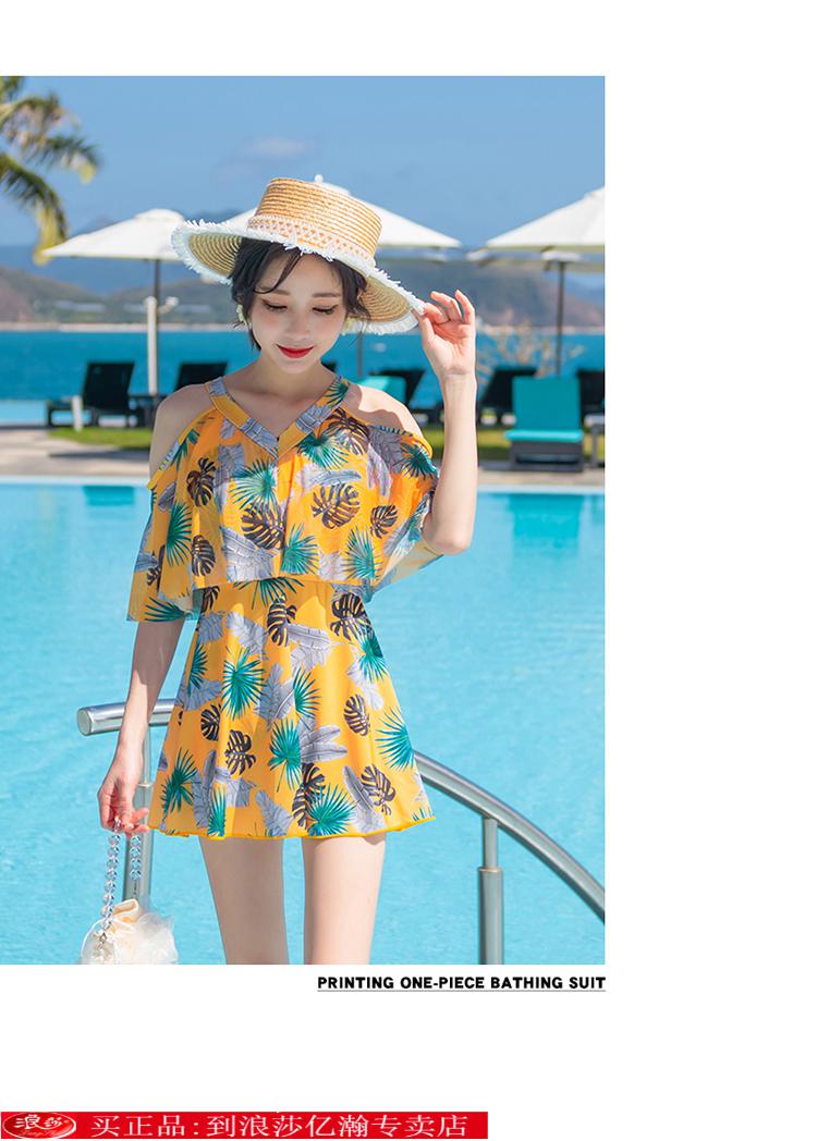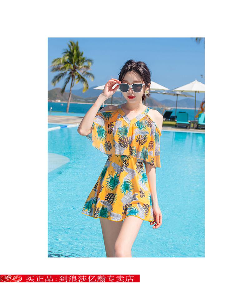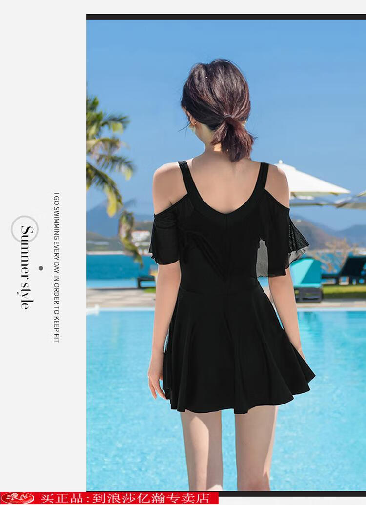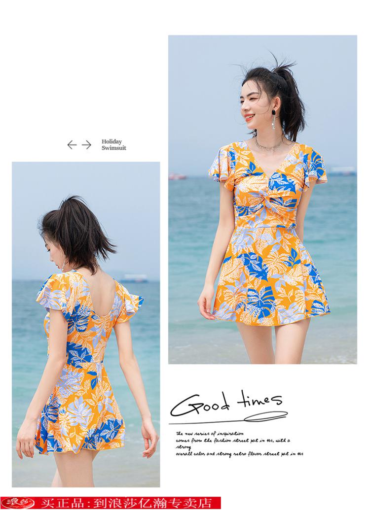 LangSha (LangSha) light luxury high-end swimsuit for female students with split skirt, fashionable, slim, loose and conservative, large size with sleeves to cover belly, quick-drying swim 4599 green 3XL recommended 140-160Jin Jin is equal to 0.5 kg