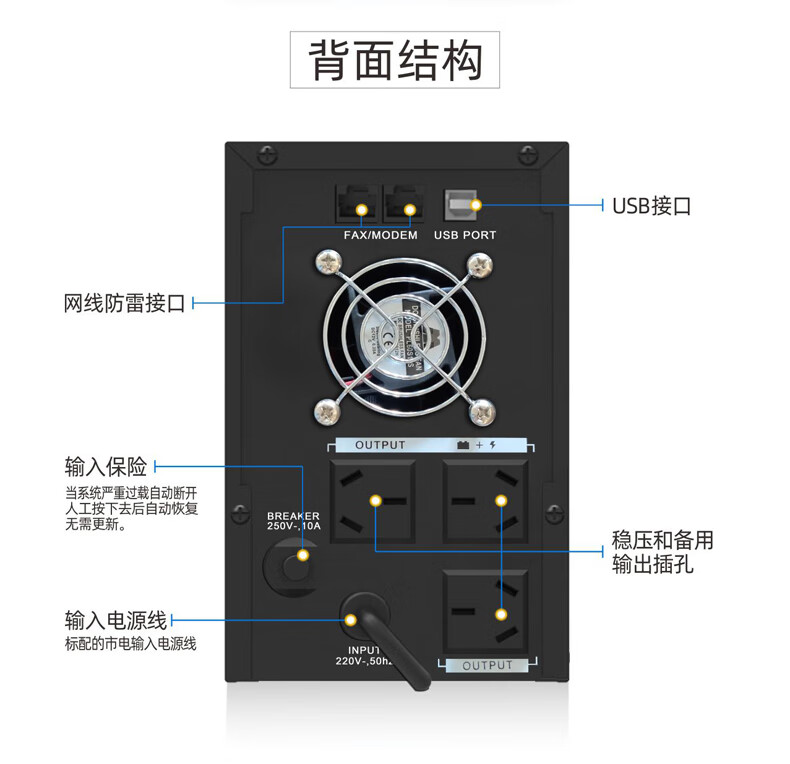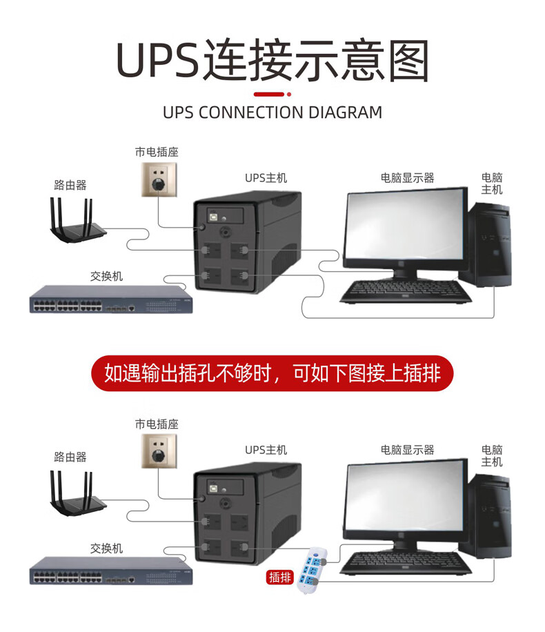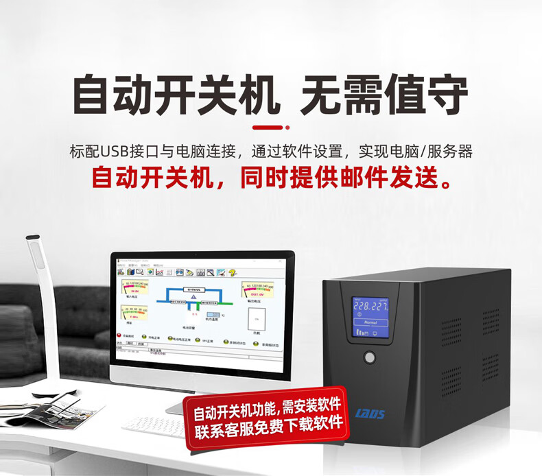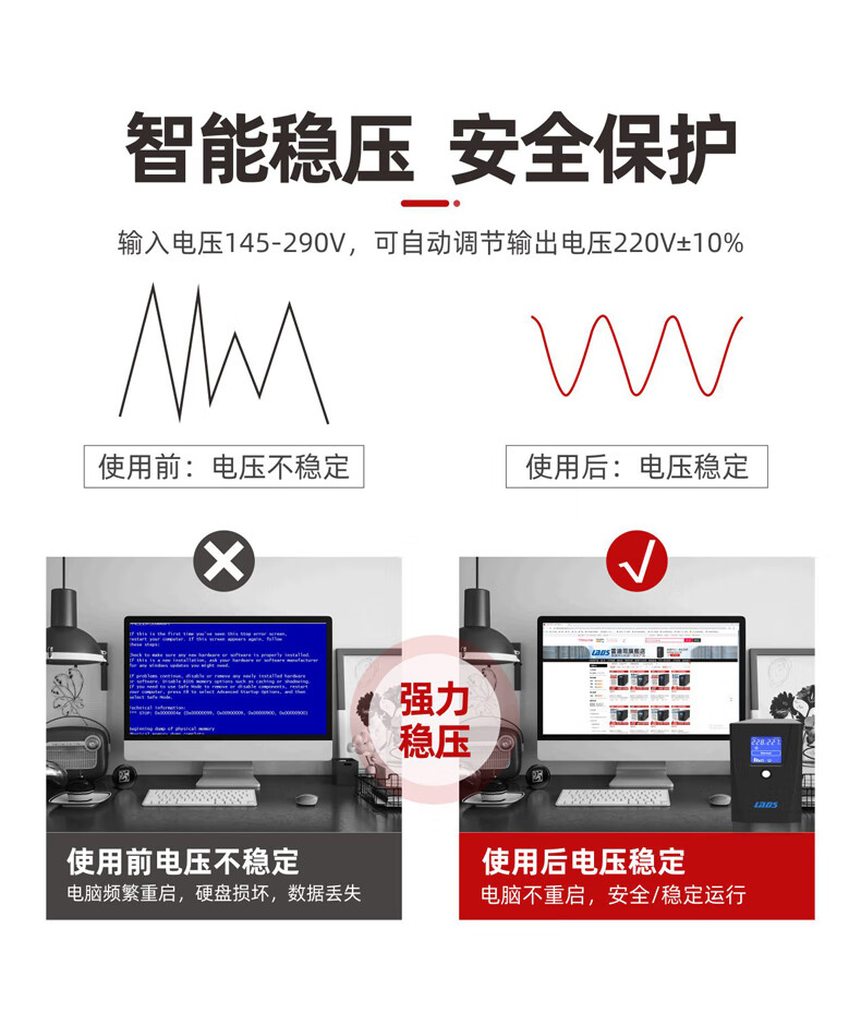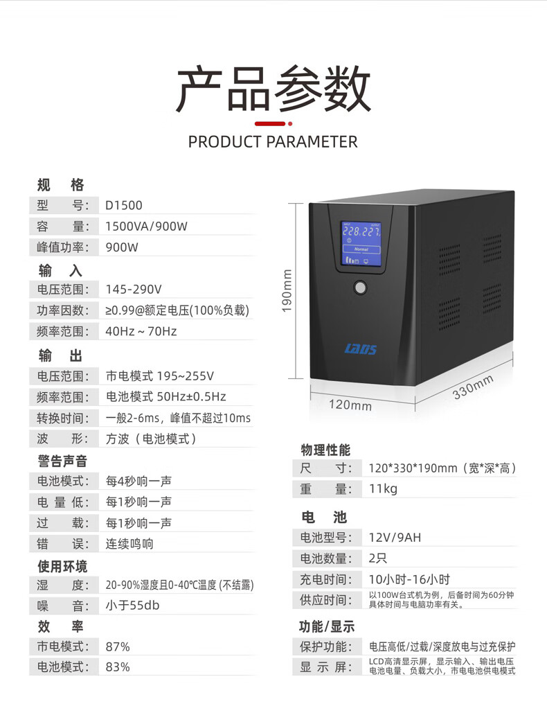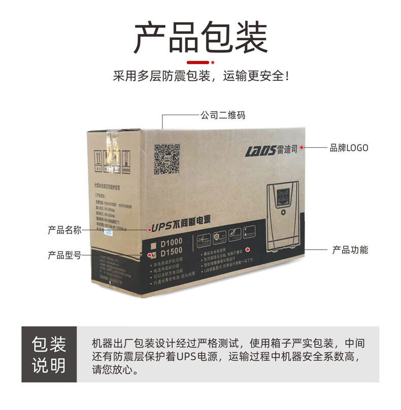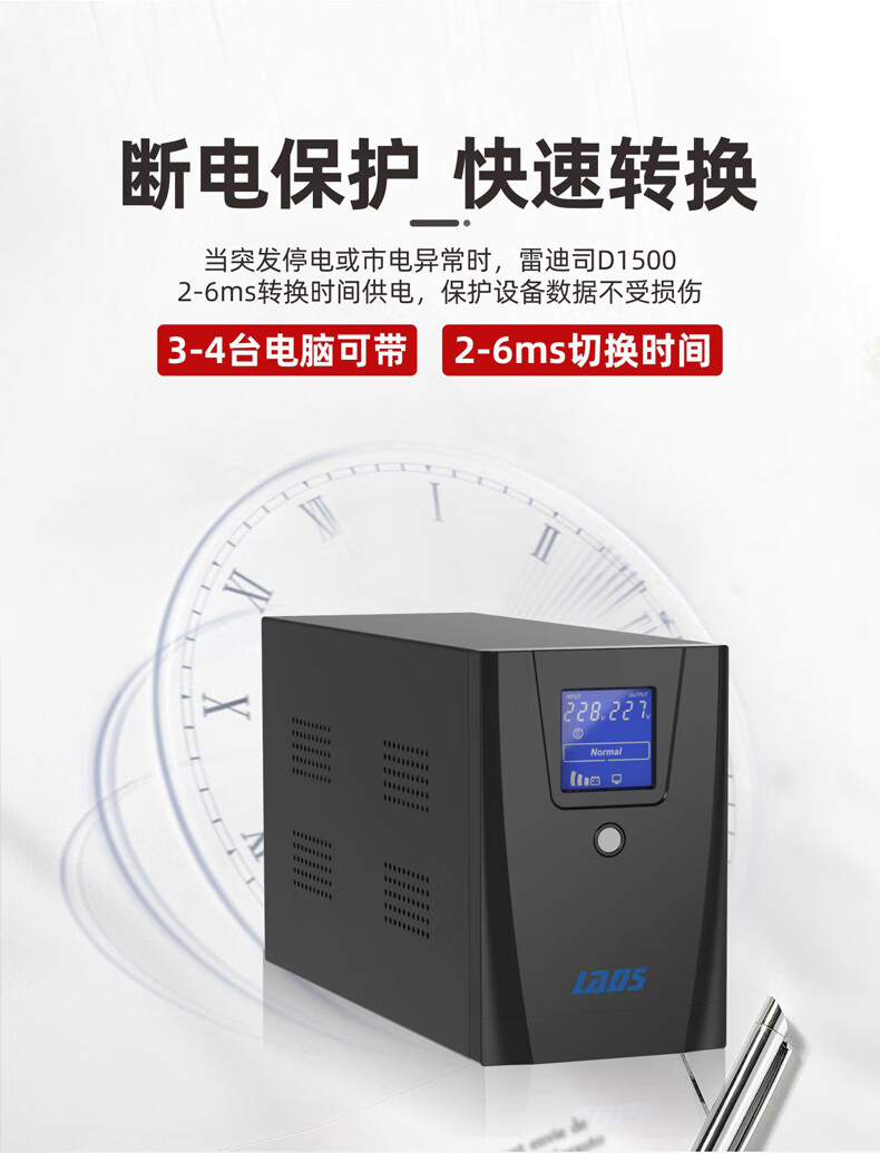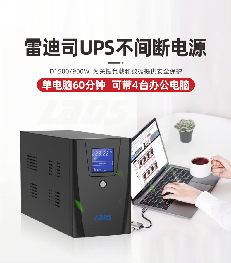 雷迪司UPS不间断电源 D1500 电脑服务器稳压防断停电备用自动开关机900W