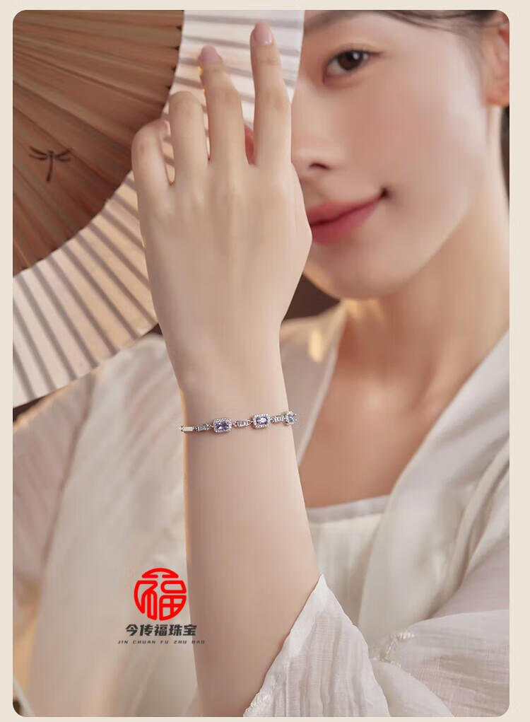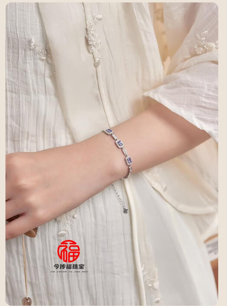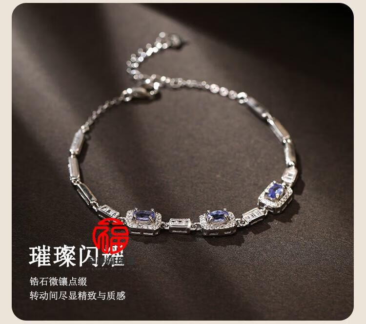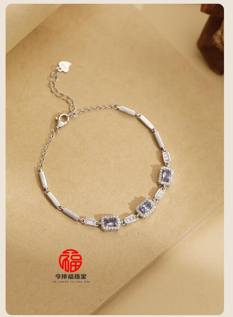 Fat Donglai Quality Tanzanite Bracelet Streaming Purple Star Natural Silver Women's Design Niche Jewelry Gift Streaming Purple Star Bracelet Extension Chain (Hand Size 13-19