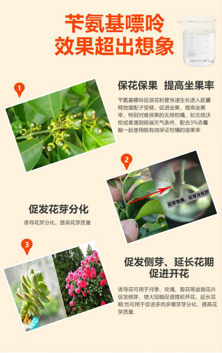 Guoguang Plant Source 2% Benzylaminopurine Citrus Fruit Tree Flower and Fruit Preserving Cytokinin Plant Growth Regulator 200ml (40 bottles 1 box)