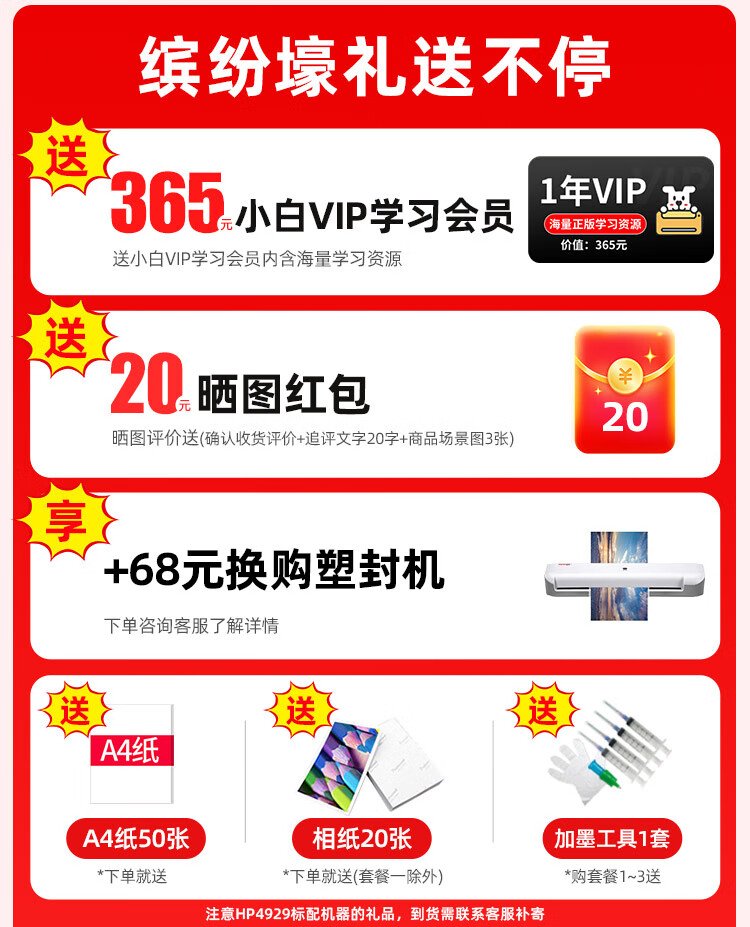 HP DJ4929 wireless color printing, copying and scanning all-in-one home homework test paper mobile phone connection large ink cartridge photo small student office A4 inkjet 4829 4929 standard (wireless printing, copying and scanning/no need to add ink, large printing volume)