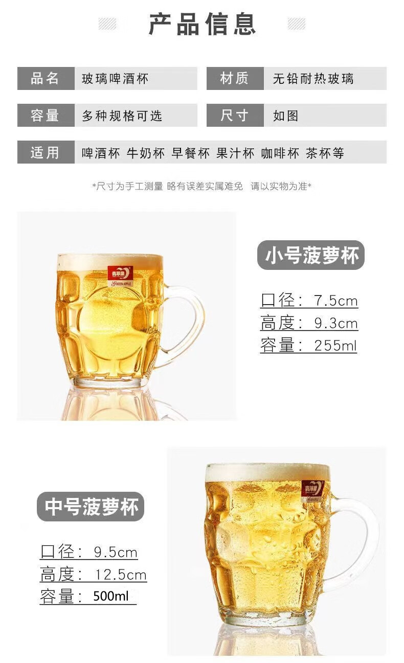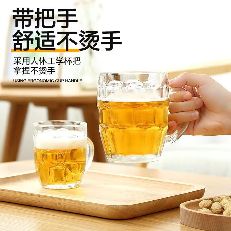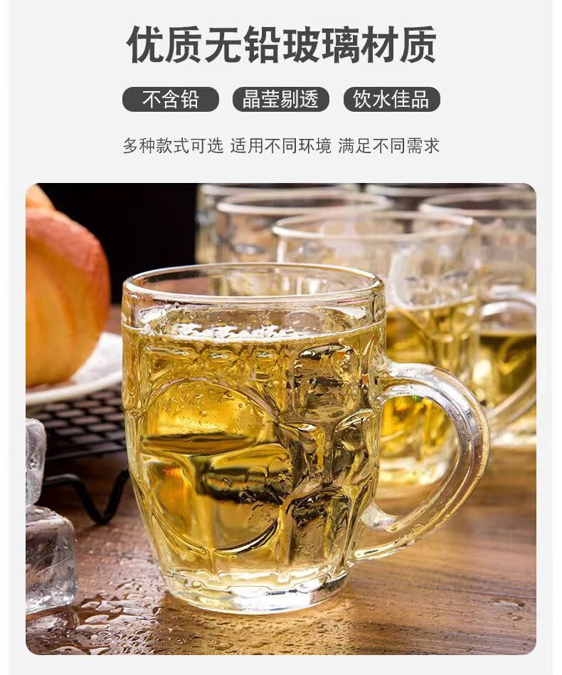 Glass Beer Cup Pineapple Cup Large 500ml Thickened Water Cup Home Catering BBQ Beer Hero Cup Handle Thickened Glass Large 500ml 1 piece