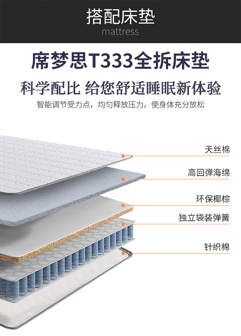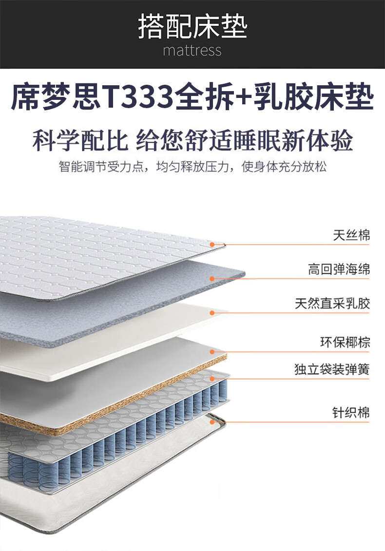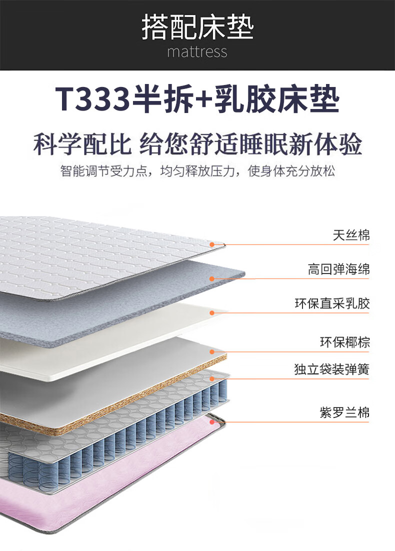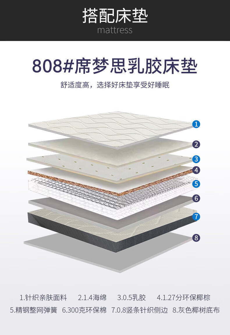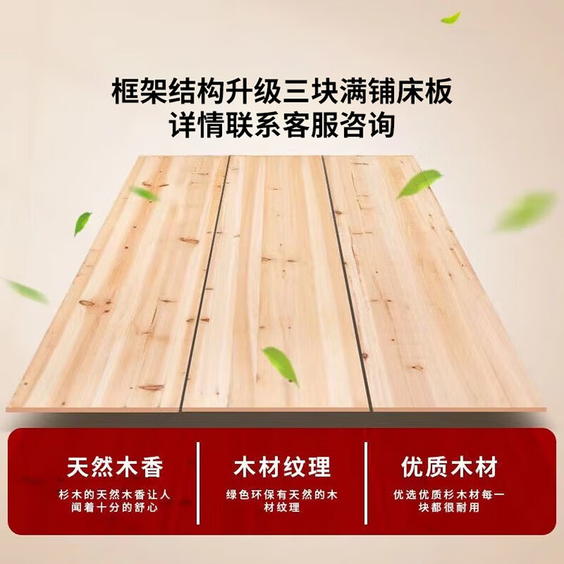 Modern Chinese double bed rubber wood solid wood bed 1.5m bed home bedroom 1.8m storage large bed wedding bed single bed color please note 1800*2000mm frame structure