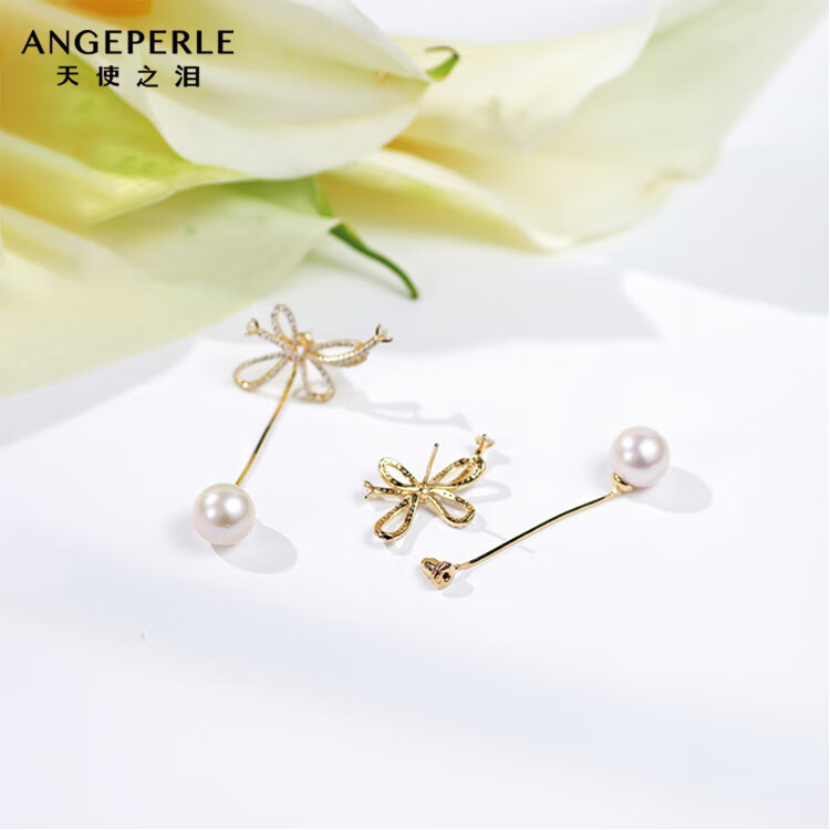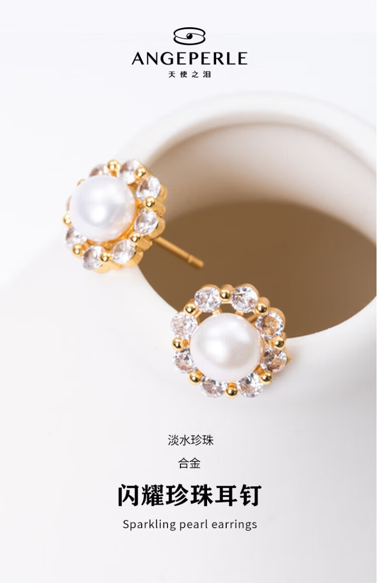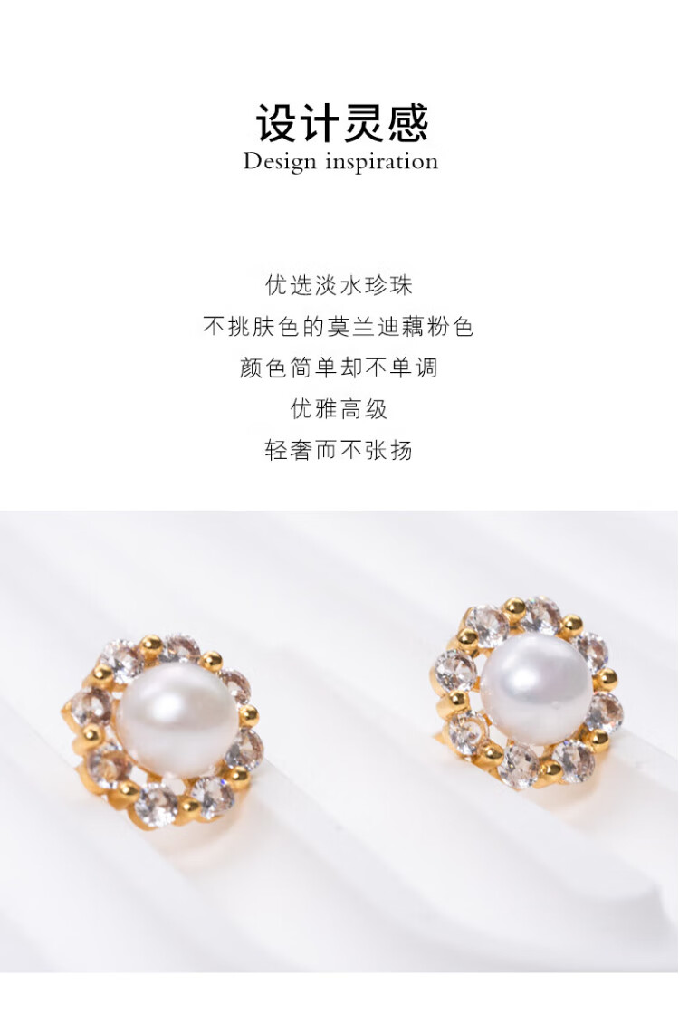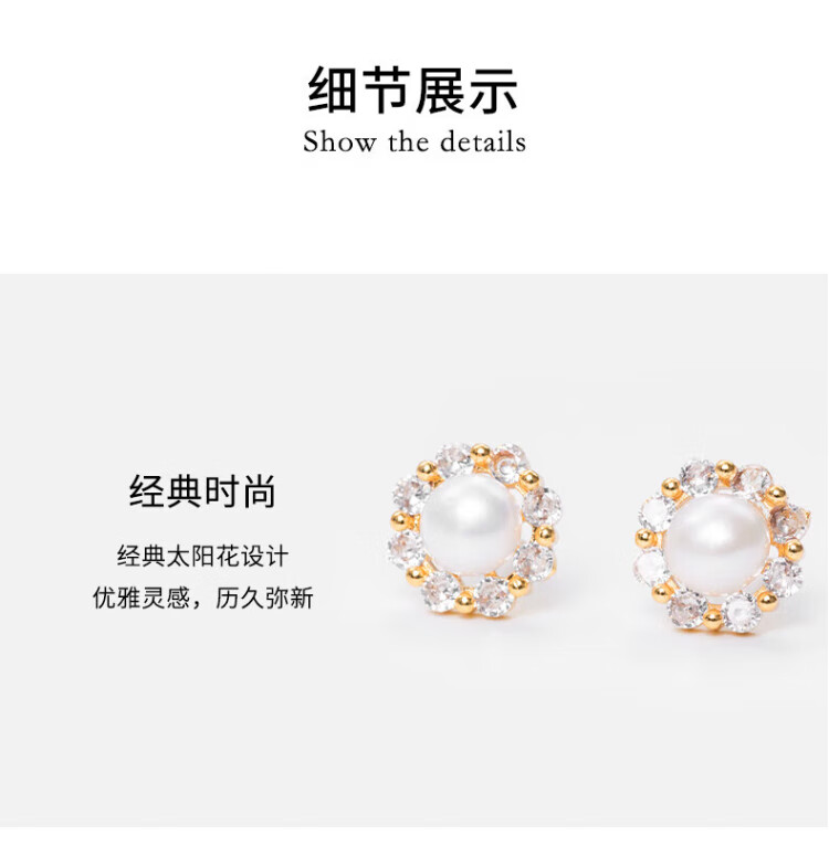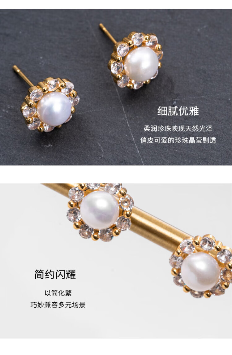 Angel's Tears Freshwater Pearl Stud Earrings Sparkling Zircon Inlaid Small Fragrance Design New Year's Valentine's Day Gift for Girlfriend Welfare Style-Sunflower Steamed Bun Round 5-6mm